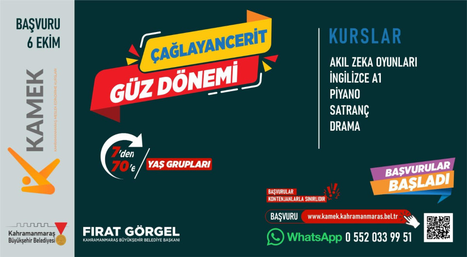 Çağlayancerit KAMEK Güz Dönemi Kurs Başvuruları