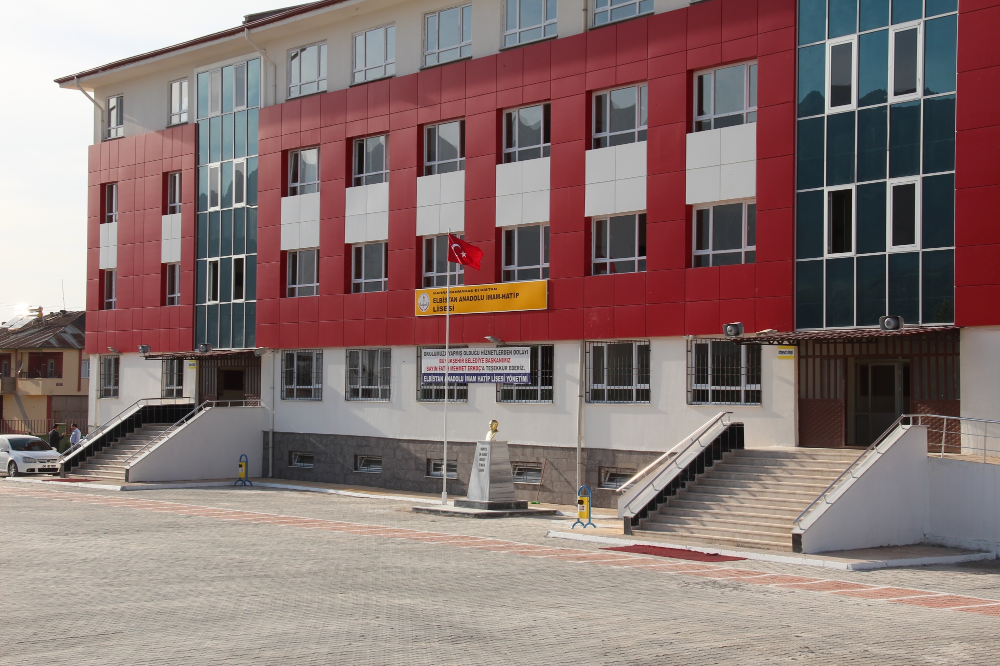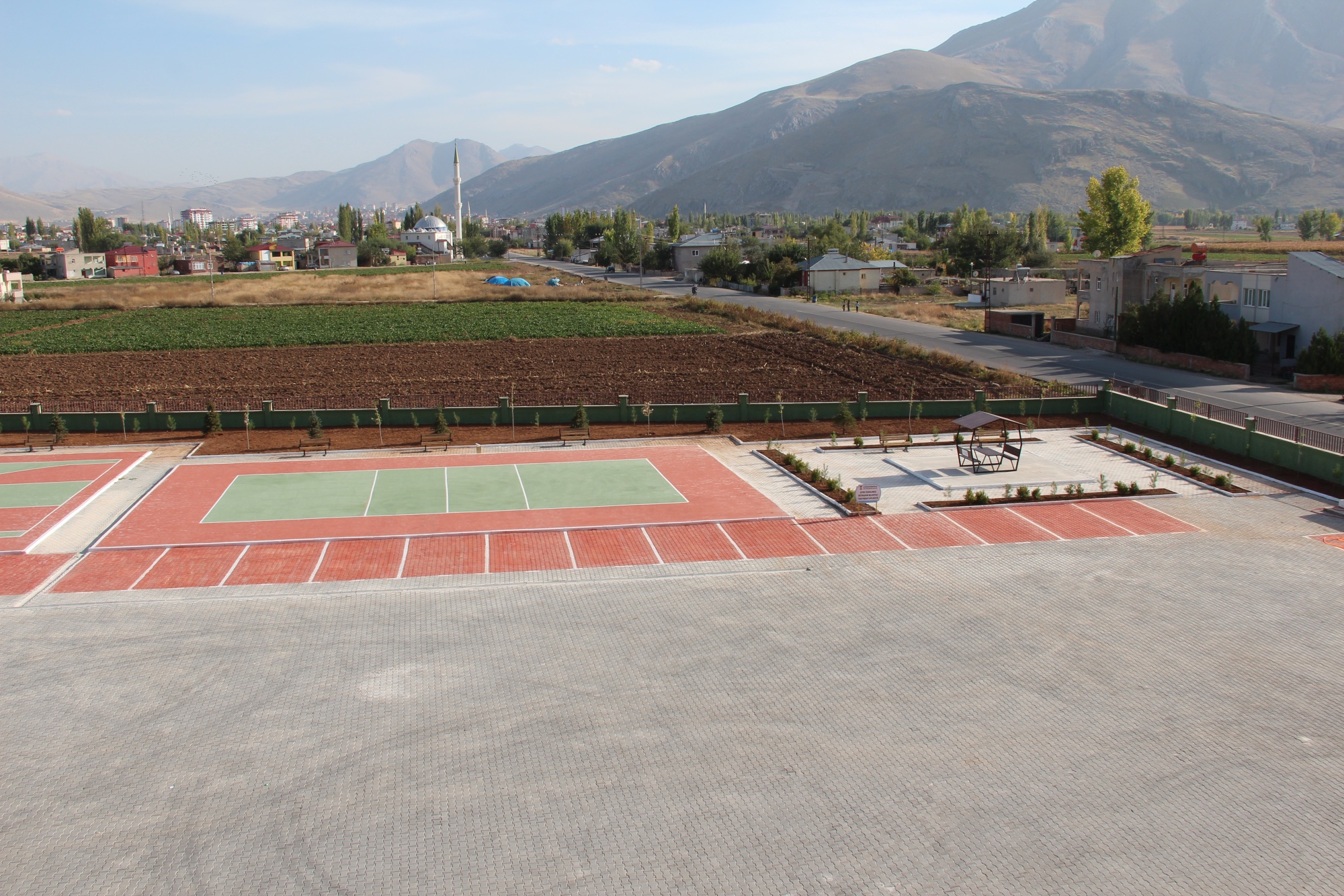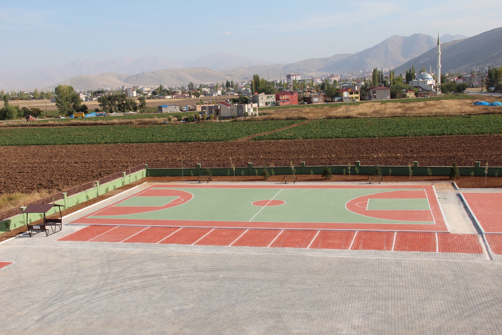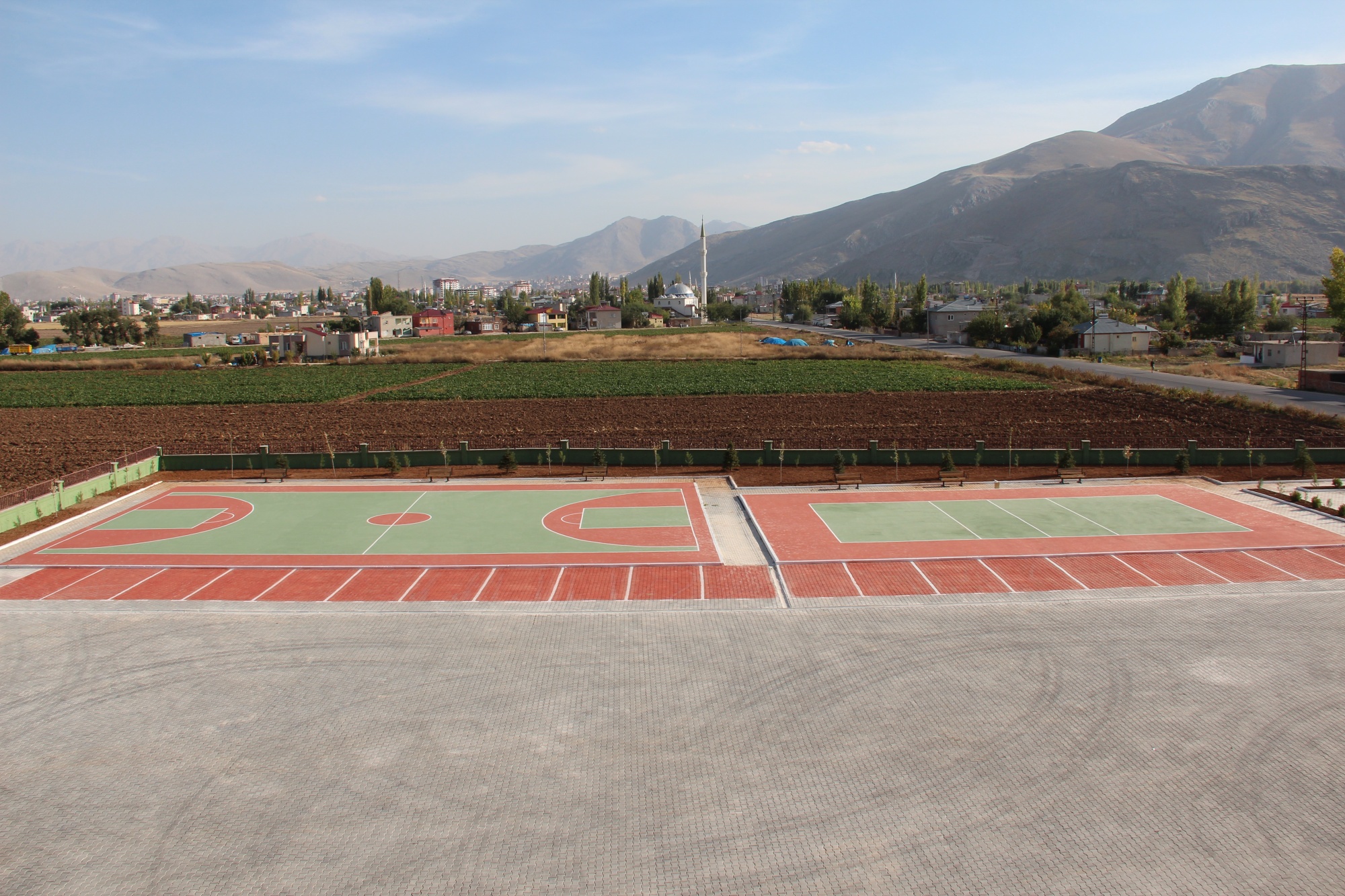 Elbistan İmam Hatip Lisesi çevre düzenlemesi; Okul bahçesin de basketbol ve voleybol sahası zemin boyama, kent mobilyaları montajı, toprak tesviye ve ağaç dikimi yapılmıştır.
