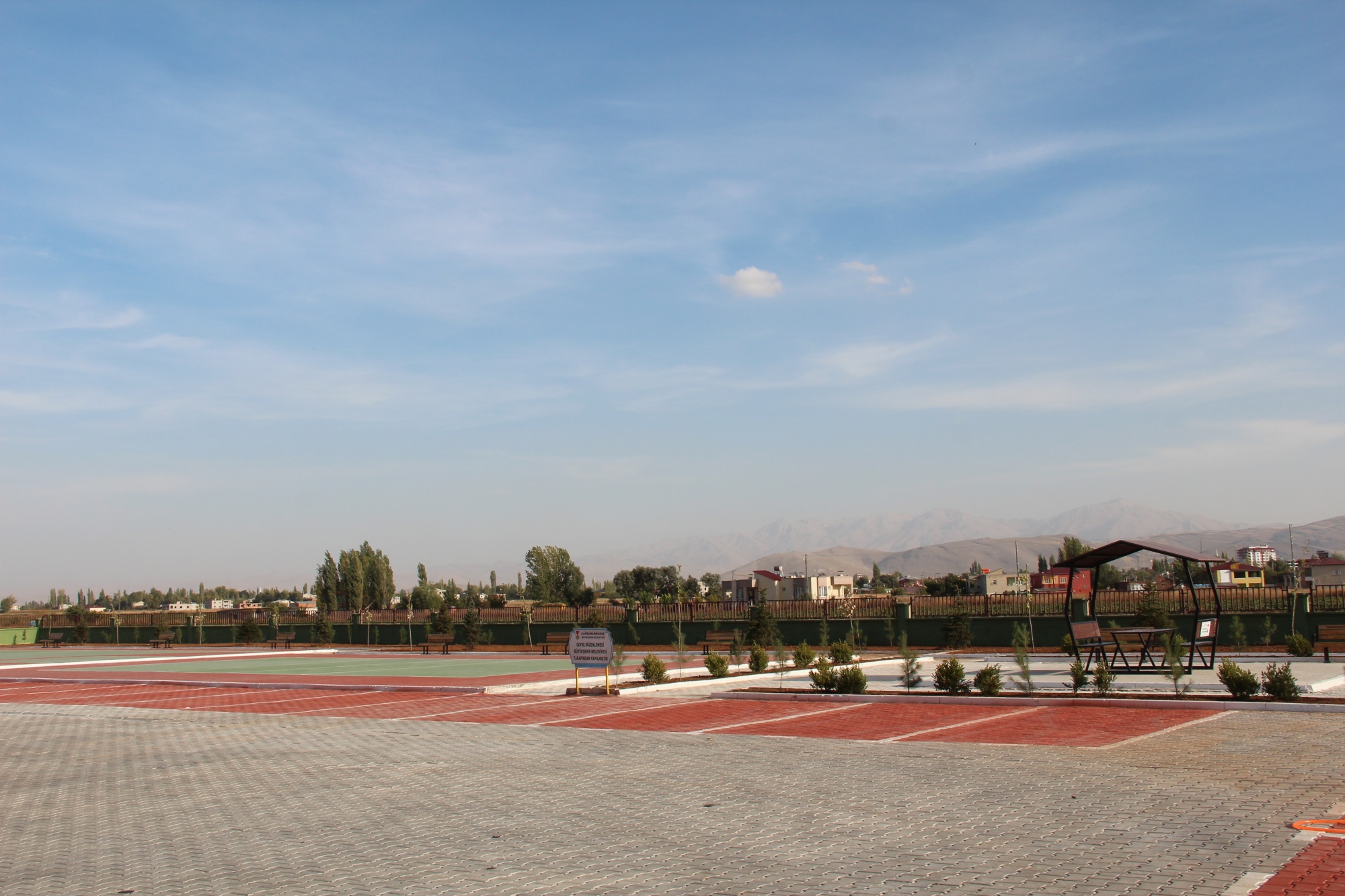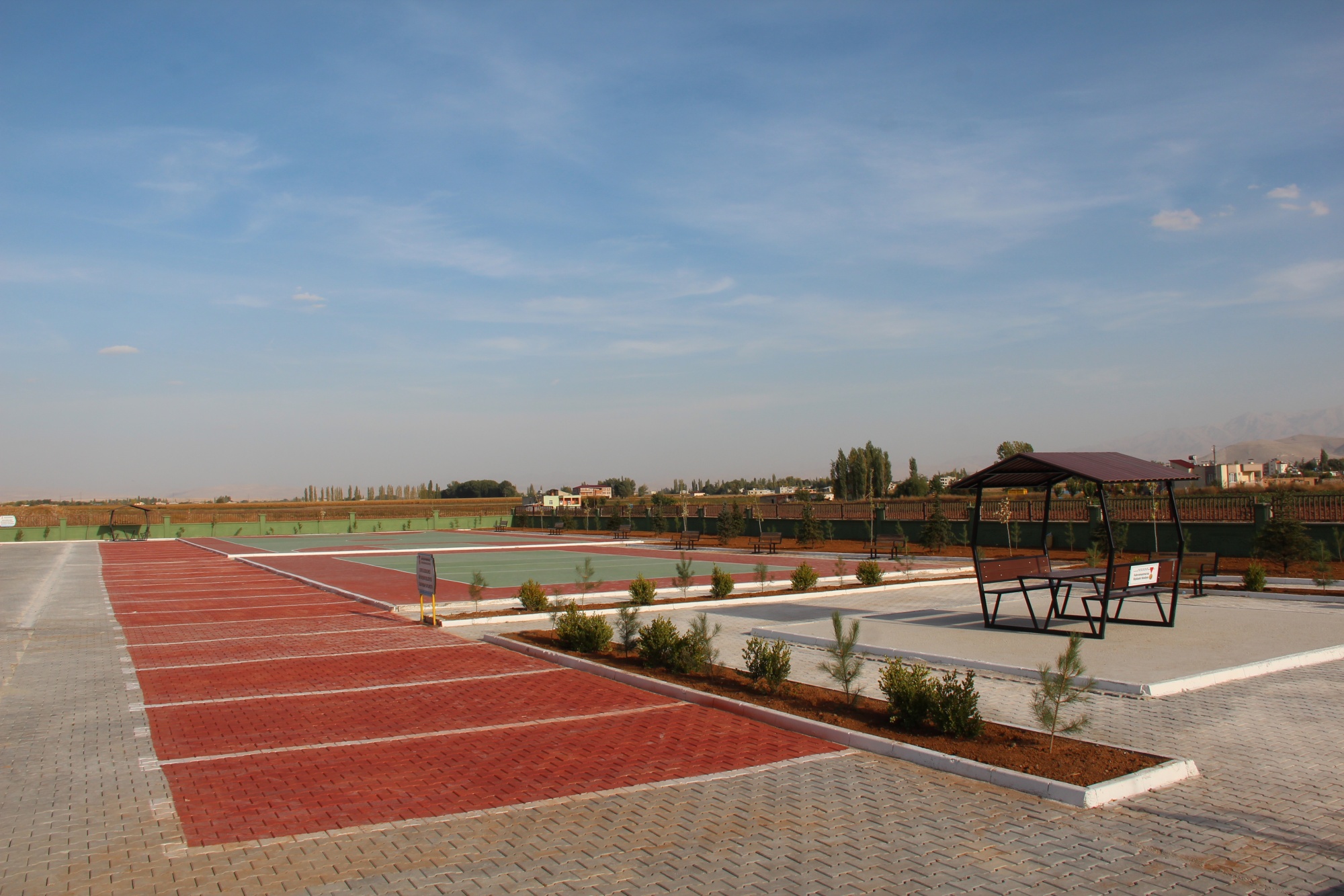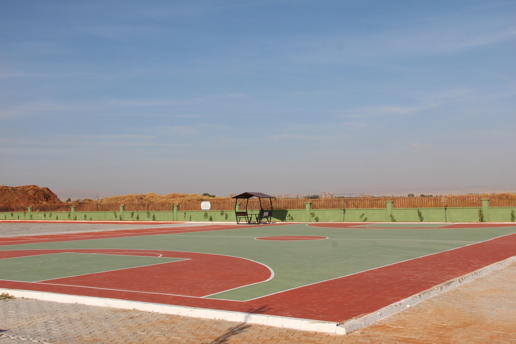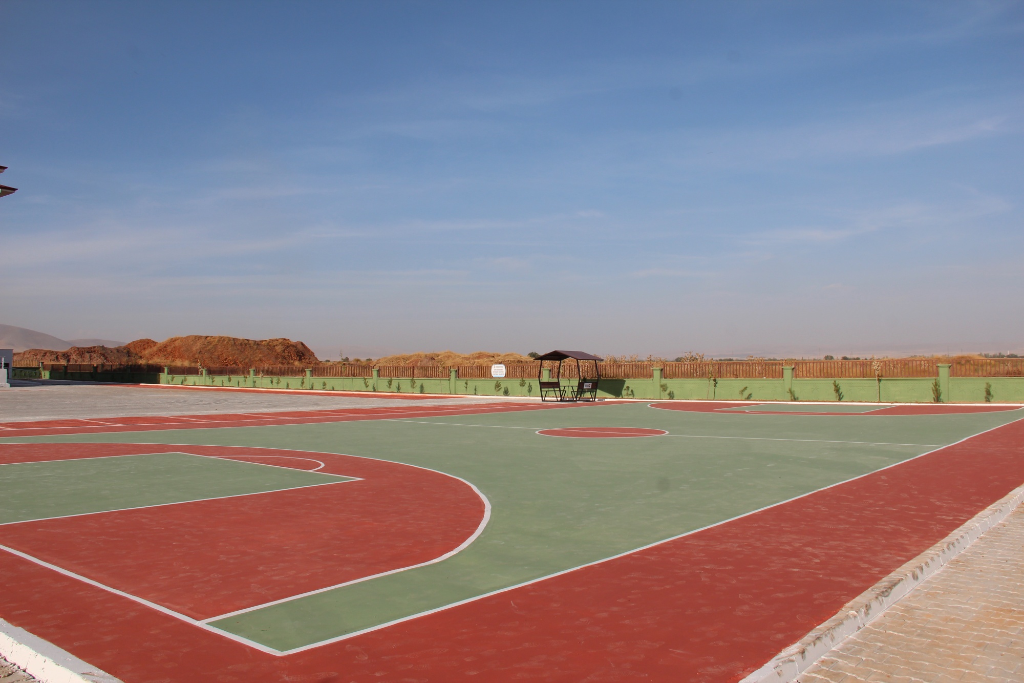 Elbistan İmam Hatip Lisesi çevre düzenlemesi; Okul bahçesin de basketbol ve voleybol sahası zemin boyama, kent mobilyaları montajı, toprak tesviye ve ağaç dikimi yapılmıştır.