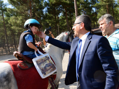Çiftlik alanında down sendromlu çocukların gelişimi için hippoterapi (atlı tedavi) hizmetini başlattıklarını belirten Başkan Güngör, “Arslanbey Mesire Alanımız içerisinde yer alan Doğal Yaşam Parkı’nda atla tedavi uygulamasını başlattık. Alanında uzman eğitmenlerimizle özel gereksinimli bireylerimize ruhsal ve fiziksel gelişimine katkı sağlama amacıyla başlattığımız bu uygulama ilgi görüyor. Bu tedavi yönteminin çocuklarımızın gelişimine katkı sağlayacağını düşünüyoruz. Büyükşehir Belediyesi olarak tüm sosyal gruplarla ilgili etkinlik ve aktivitelerimizi artırarak sürdüreceğiz” ifadelerini kullandı.