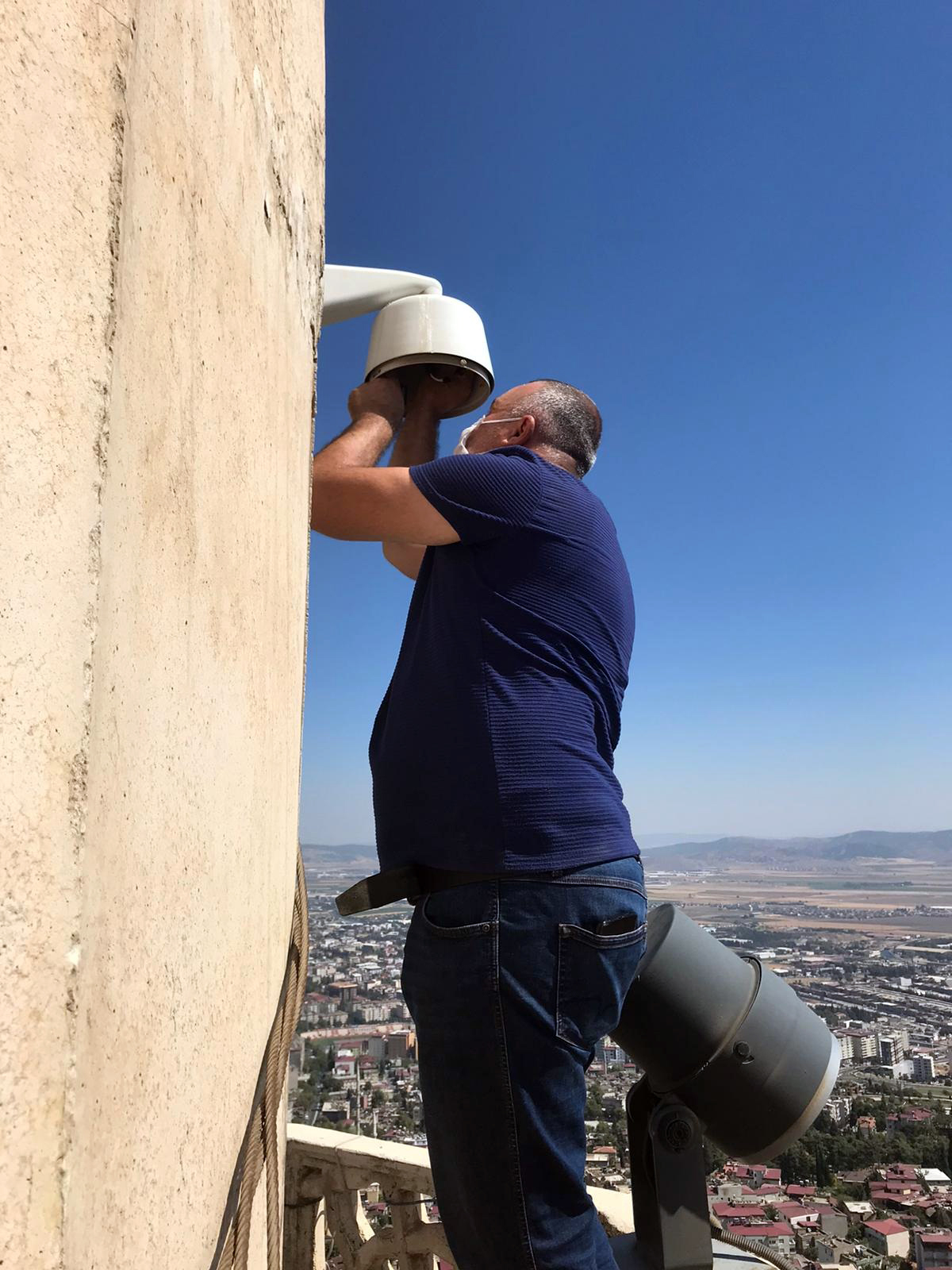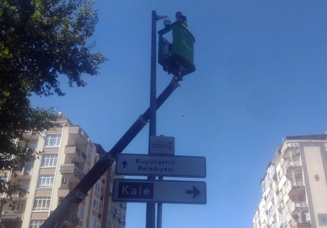 Kahramanmaraş Büyükşehir Belediyesi il genelinde değişik noktalarda bulunan mobese kameralarının bakım ve onarımlarını yapıyor.
