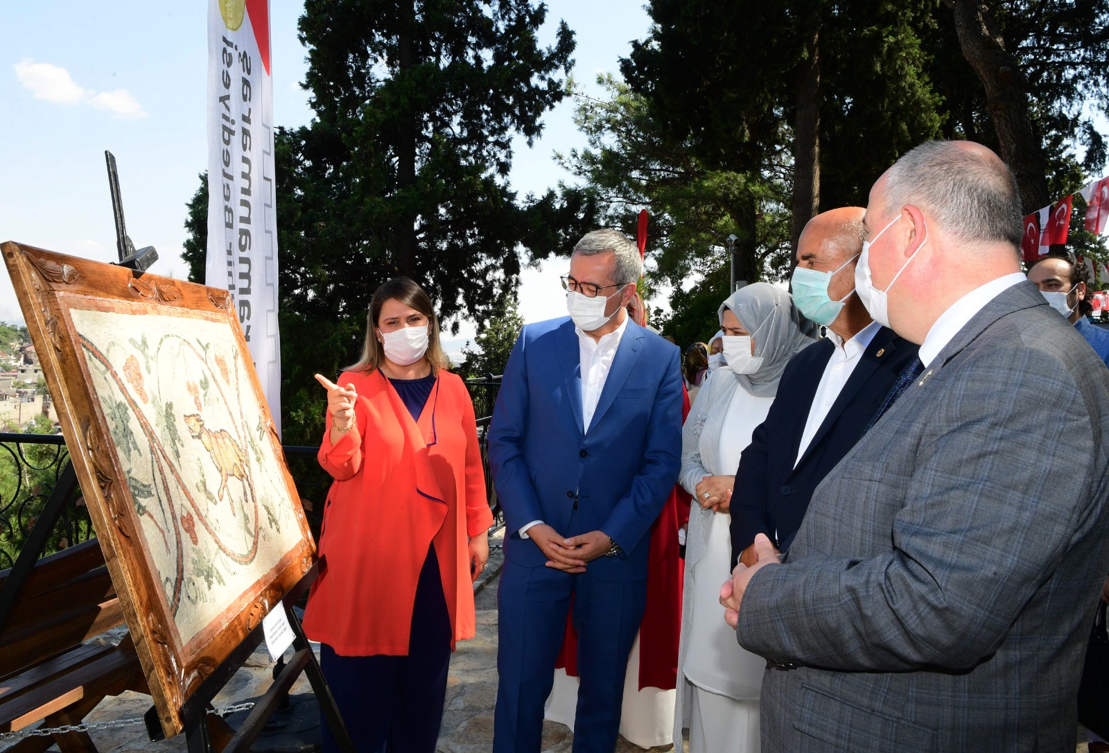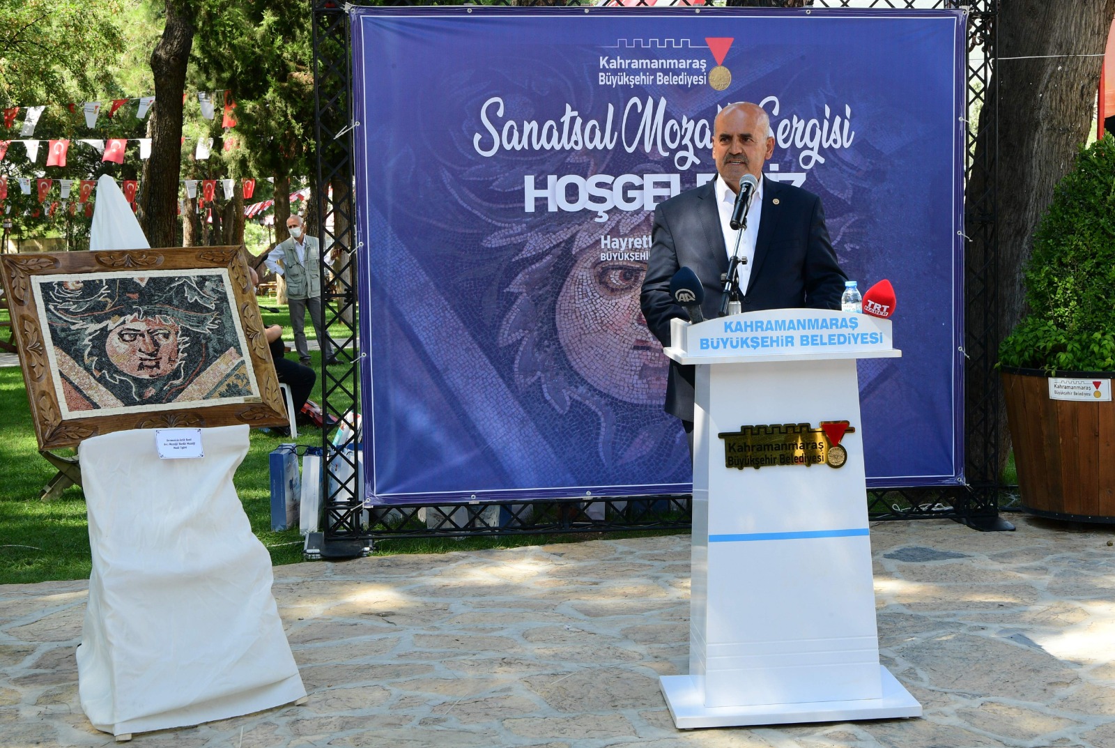 Sergi açılışında Kahramanmaraş’ın 10 bin yıl geriye götürülebilecek bir tarihe sahip olduğunu belirten Kahramanmaraş Büyükşehir Belediye Başkanı Hayrettin Güngör; “Her zaman söylediğimiz gibi, Kahramanmaraş’ımız kadim bir tarihe sahiptir. Bunun anlam ve önemini şehrimizde bugün de yaşatılmakta olan el sanatları ve sanatın diğer dallarına bakarak anlayabiliriz. Maraş Saray Mutfağı, Kahramanmaraş’ımızın kadim kültürünü yansıtan bir yönüdür. Bıçakçılık, kuyumculuk, bakırcılık, Maraş işi sim sırma ve edebiyat, Kahramanmaraş kültürünün ne kadar kalıcı, etkileyici ve özel olduğunu göstermeye yetmektedir. Bir resim sanatı olarak değerlendirilen mozaik sanatı da Kahramanmaraş’ımızın bu sanatsal yönünü yansıtan diğer bir yönüdür. Şimdi bunların yaşatılması, tanıtılması, şehrin turizmine, ekonomisine kazandırılması için gayret gösteriyoruz. Germanica Antik Kenti’nde, camilerimizde, tarihi konaklarımızda rastladığımız, taş ve cam kullanılarak icra edilen mozaik sanatı geçmişi bugüne, bugünü de geleceğe taşımaktadır. Büyükşehir Belediyesi olarak bu nadide, kalıcı sanat dalının, günümüzde daha aktif icra edilmesi için, üniversitemiz ve İŞ-KUR işbirliğiyle ev hanımlarımıza yönelik Sanatsal Mozaik Kursu açtık. Kursiyerlerimizin çoğu ev hanımlarından oluşmaktadır. Sergimiz, bu KAMEK kursunda eğitimini başarıyla tamamlayan kursiyerlerin değerli çalışmalarından oluşmaktadır. Hepsini yürekten tebrik ediyorum. Değerli hocalarıma teşekkür ediyorum. Bu tür çalışmaların şehrimizin tanıtımında, kültürel değerlerinin yansıtılmasında çok etkilidir.” ifadelerinde bulundu.