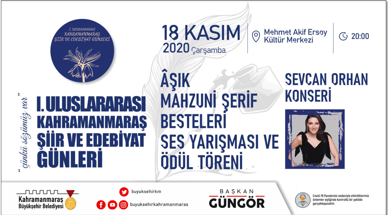 Kahramanmaraş Büyükşehir Belediyesi 1. Uluslararası Şiir ve Edebiyat Günleri başlıyor. 16 – 20 Kasım tarihlerinde 11 ilçede gerçekleştirilecek 40’ın üzerinde etkinlikte şiir ve edebiyat konuşulacak. Şiir, Öykü, Deneme ve Portre Yarışmaları ile Aşık Mahzuni Besteleri Ses Yarışması’nda dereceye girenlere ödülleri verilecek. Yine bir ilk olacak uluslararası etkinlik kapsamında Kahramanmaraş Şiir ve Edebiyat Ödülleri de sahiplerini bulacak.