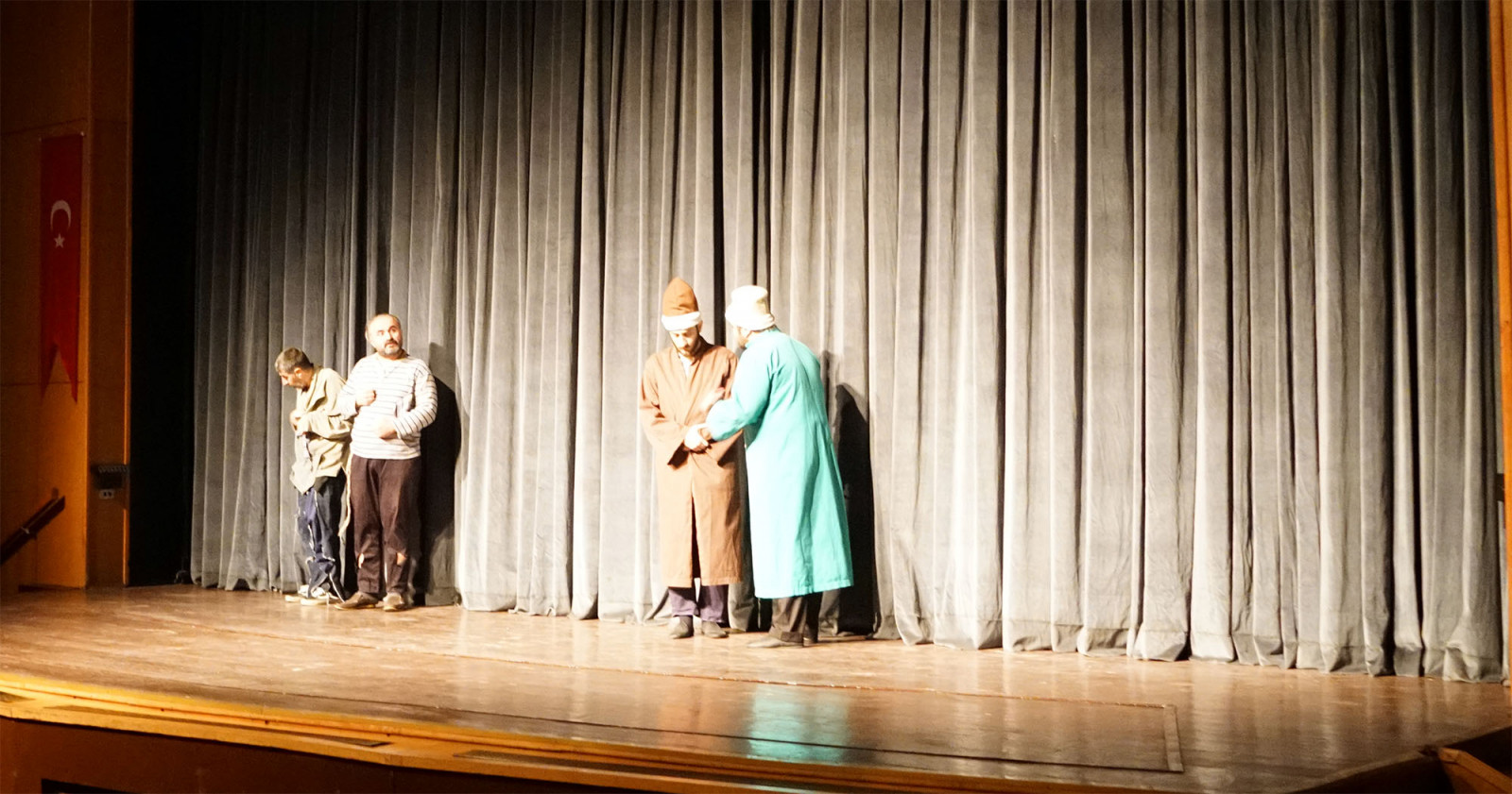 Kahramanmaraş Büyükşehir Belediyesi Kasım kültür sanat etkinlikleri çerçevesinde‘Ziyafet Sofrası’ adlı tiyatro oyunu seyirciyle buluştu. Necip Fazıl Kısakürek Kültür Merkezi’nde gerçekleştirilen etkinlikte Ayşe Şahinboy’un uyarladığı, Osman Doğan’ın yönettiği ‘Ziyafet Sofrası’ adlı tiyatro oyunu sanatseverler tarafından beğeni topladı. Gösterimin ardından Kültür Turizm ve Spor Dairesi Başkanı Duran Doğan günün anısına oyunculara hediye takdim etti. Yönetmen Osman Doğan ise Kahramanmaraş’ta bulunmaktan duydukları memnuniyeti ifade etti.