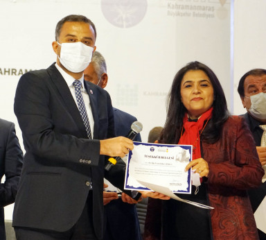 Kahramanmaraş Büyükşehir Belediyesi1. Uluslararası Kahramanmaraş Şiir ve Edebiyat Günleri kapsamında düzenlenen “Aşık Mahzuni Şerif Besteleri Ses Yarışması Ödül Töreni” gerçekleştirildi. Mehmet Akif Kültür Merkezi’ndeki programa Büyükşehir Belediyesi Başkan Vekili Hanifi Toptaş, Genel Sekreter Rüstem Keleş, KSÜ Rektör Yardımcısı Prof. Dr. Kadir Saltalı ile vatandaşlar katıldı. Pandemi tedbirleri kapsamında gerçekleştirilen etkinlikte ilk olarak daha önceki elemelerde belirlenen 10 finalist Aşık Mahzuni Şerif’in eserlerini seslendirdi.