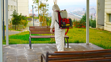 Kahramanmaraş Büyükşehir Belediyesi Covid-19 salgınıyla mücadele kapsamındaki dezenfeksiyon çalışmalarına aralıksız devam ediyor. Çevre Koruma ve Kontrol Dairesi Başkanlığı tarafından yürütülen çalışmalarda, sağlıkçılar, filyasyon ekipleri ve karantinada kalacak vatandaşlara tahsis edilen Kahramanmaraş Sütçü İmam Üniversitesi Avşar Yurdu’nda yer alan,odalar, sosyal ve ortak alanlarda dezenfeksiyon uygulaması gerçekleştirildi. Toplamda 4 blok ve 1 idari binadan oluşan yurtta; oda, tuvalet ve banyoların yanı sıra, yemekhane, asansör ve çamaşırhane gibi ortak alanlar da dezenfekte edildi.