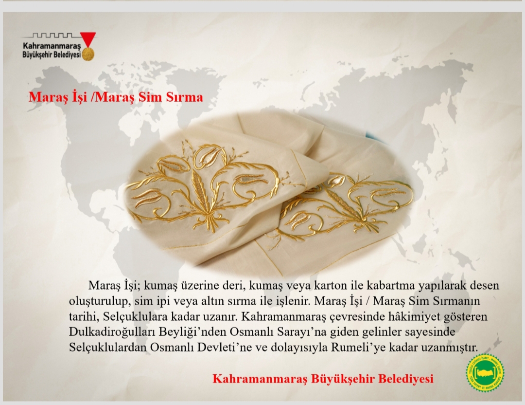 Büyükşehir Belediyesi Mahalle ve Tarım Hizmetleri Dairesi Başkanlığı’ndan konu ile ilgili olarak yapılan açıklamada: “Büyükşehir Belediyesi olarak, Kahramanmaraş Sütçü İmam Üniversitesi, Esnaf ve Sanatkarlar Odaları, Ticaret ve Sanayi Odası, Lokantacılar Odası gibi kurumlarımızla işbirliği içerisinde çalışarak Kahramanmaraş’ın kültürel mirasını, doğal kaynaklarını gün yüzüne çıkarmak, kültürel değerlerimizi koruma altına almak adına birçok çalışmalar yapmaktayız. Bu çalışmalardan birtanesi de coğrafi işaret çalışmalarıdır.2012 yılından bu yana Coğrafi İşaret başvurusu yapmaktayız. Şehrimize ait 14 adet tescil bulunmaktadır. Bunların 9 adedi Büyükşehir belediyemize 5 adedi diğer kurumlarımıza aittir. Büyükşehir Belediyesi olarak birçok yeni başvuru için çalışmalarımız devam etmektedir” denilerek bilgi verildi.