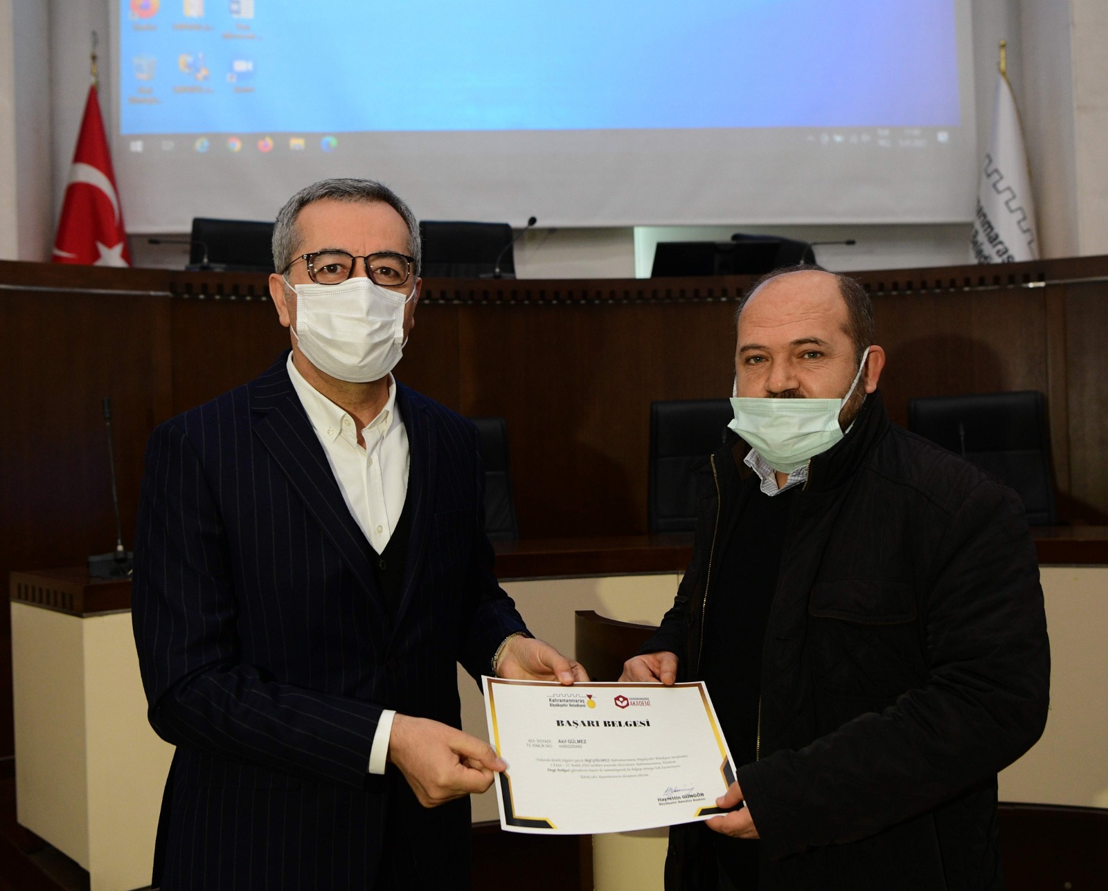 İlk kez gerçekleştirilen Büyükşehir Akademi’de mezuniyet heyecanının yaşandığını belirten Büyükşehir Belediye Başkanı Hayrettin Güngör, “Kahramanmaraş Akademimizle yüzlerce hemşehrimizi, birçok alanda bilgi ve becerilerini geliştirebileceği ücretsiz eğitimlerle buluşturduk. Kahramanmaraş Akademi şehrimizin taleplerine, hocalarımızın tavsiyelerine, kısacası tüm paydaşların etkin katılımlarına uygun olarak gerçekleşti. İnşallah bu eğitimlerimizi akademik takvimlere uygun olarak hemşehrilerimizin istifadesine sunmaya devam edeceğiz. Tüm mezunlarımızı ve kıymetli hocalarımızı tebrik ediyorum” ifadelerini kullandı. Büyükşehir Belediye Başkanı Hayrettin Güngör’ün konuşmasının ardından Büyükşehir Akademi öğrencilerine başarı belgeleri verildi.