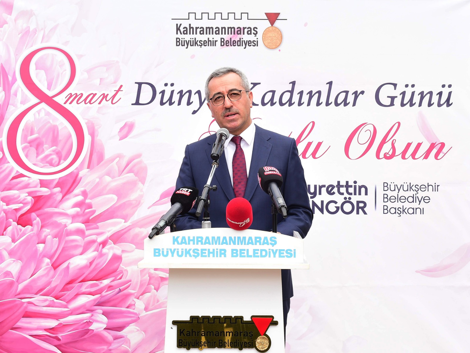 Kahramanmaraş Büyükşehir Belediye Başkanı Hayrettin Güngör düzenlenen etkinlikteki konuşmasında, “Öncelikle helikopter kazasında şehit olan 2’si Kahramanmaraşlı 11 kahraman askerimize Allah'tan rahmet diliyorum, mekânları cennet olsun. Bugün 8 Mart Dünya kadınlar günü; başta şehit anneleri ve şehit eşleri olmak üzere sevgi dolu yürekleri ve fedakârlıklarıyla dünyamızı güzelleştiren tüm kadınlarımızın gününü tebrik ediyoruz. Bizler cennet annelerin ayakları altındadır inancına sahip bir medeniyetin mensuplarıyız. Kadına saygı, inancımızın, kültürümüzün, tarihimizin ve sosyal hayatımızın en temel dinamiğidir.Neşet Ertaş’ın da dediği gibi: Kadınlar insandır bizler insanoğlu” ifadelerini kullandı.