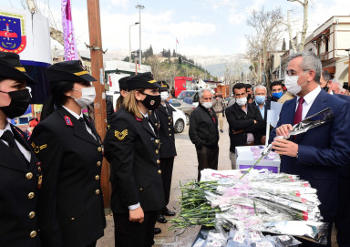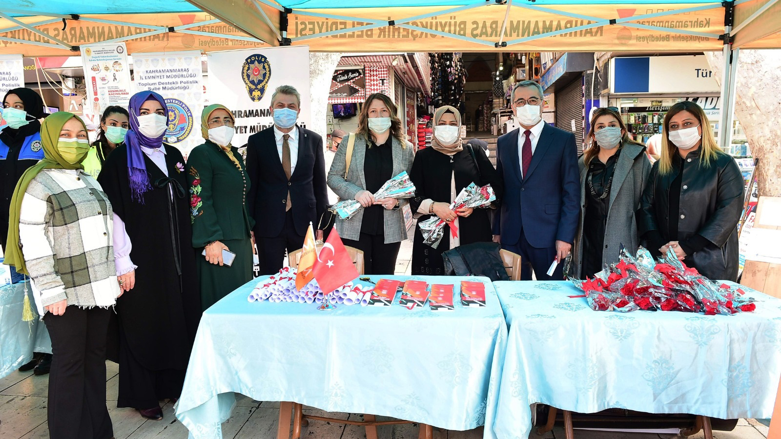Kahramanmaraş Büyükşehir Belediyesi, Aile ve Sosyal Politikalar İl Müdürlüğü işbirliğiyle 8 Mart Dünya Kadınlar Günü etkinliği düzenledi. Demokrasi Meydanı’nda düzenlenen etkinliğe Büyükşehir Belediye Başkanı Hayrettin Güngör, AK Parti İl Başkanı Fırat Görgel, Kahramanmaraş İl Milletvekilleri Ahmet Özdemir ve Mehmet Cihat Sezal eşleriyle birlikte katıldı. Etkinlikte, Kahramanmaraş Kadın Kooperatifi, Kahraman Kadınlar Kooperatifi, Kahramanmaraş Kadın Platformu, Elbistan Kadın Kooperatifi ve KADEM stantlarıyla yer aldı. Aile ve Sosyal Politikalar İl Müdürlüğü, İl Emniyet Müdürlüğü ve kamu kurum temsilcilerinin katıldığı etkinlikte kadın haklarına yönelik broşürler dağıtıldı. Protokol konuşmalarıyla başlayan etkinlikte, katılımcı sivil toplum kuruluşları tarafından hazırlanan kermesle devam etti. Büyükşehir Belediyesi tarafından etkinlik alanındaki kadın ziyaretçilere karanfil hediye edilmesi renkli görüntüler oluşturdu.