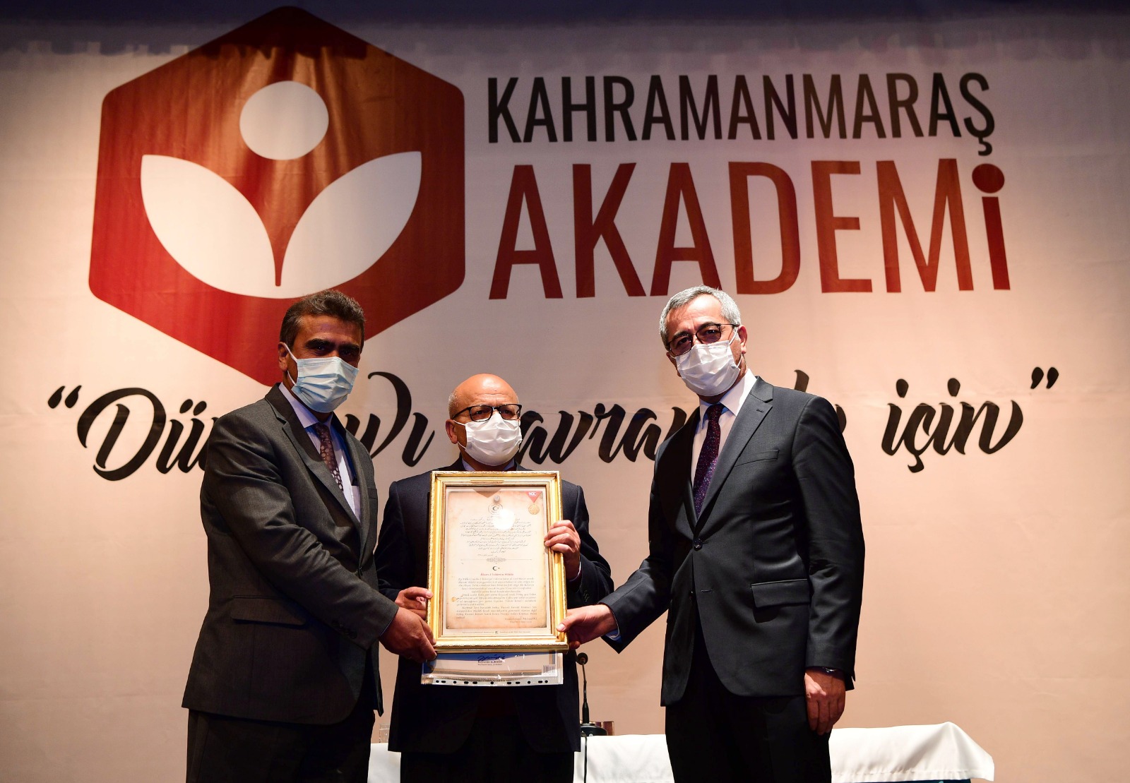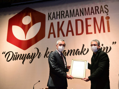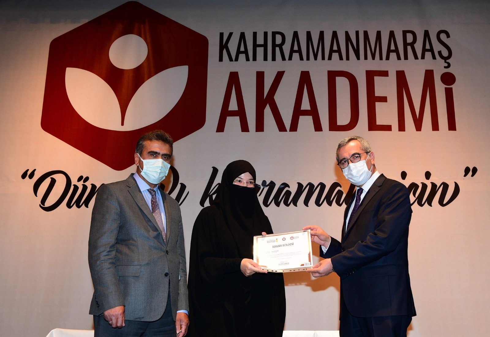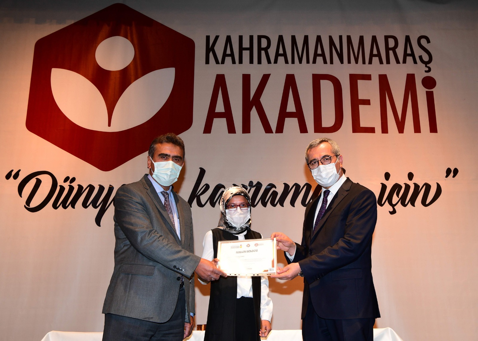 Büyükşehir Belediye Başkanı Hayrettin Güngör sözlerini, “Sütçü İmam Üniversite’mizle ve diğer tüm paydaş kurumlarımızla kurduğumuz yüksek koordinasyon, bir kültür ve sanat iklimi oluşturmamıza olanak sağlıyor. Kahramanmaraş Akademi de şehrin kültürel birikimini artırıcı bir rolü hamdolsun üstlendi. Akademi eğitimlerimizin yaz döneminde ve önümüzdeki diğer eğitim öğretim dönemlerinde devam edeceğinin müjdesini de vermiş olalım. Bu vesileyle tüm eğitimcilerimize canı gönülden teşekkür ediyor, kursiyerlerimizi başarılarından dolayı tebrik ediyor ve gelecek Ramazan ayının hayırlara vesile olmasını diliyorum” ifadeleriyle noktaladı. Sertifika töreniyle devam eden etkinlikte kursiyerlere ve eğitmenlere sertifikaları Başkan Güngör tarafından verildi.
