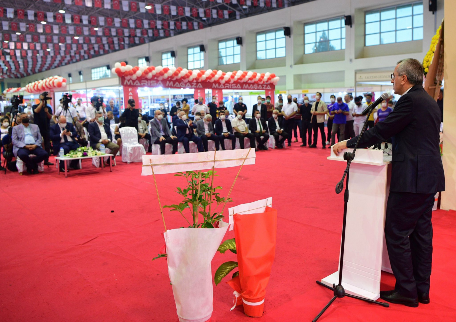 Büyükşehir Belediye Başkanı Hayrettin Güngör konuşmasında kentin ticaret hacmindeki büyümeye dikkat çekerek: “Kahramanmaraş’ımız birçok farklı sektörde önemli bir konumda bulunuyor. Özellikle tekstil, kuyumculuk, hediyelik eşya üretimlerinde gurur duyacağımız bir ticaret hacmimiz var. Bu yıl üçüncüsünü düzenlediğimiz bu etkinliğin de esnaflarımız tararından üretilen ürünleri, vatandaşlarımızla buluşturması bakımından bir hareketlilik oluşturacağını öngörüyoruz. Sektörel kümelenmeyi son derece önemsiyorum. Ayakkabıcı esnaflarımızda olduğu gibi, 200’e yakın esnafımızın ve 10 bine yakın vatandaşımızın üretim sağladığı terzi ve konfeksiyon sektöründe de derli toplu bir alan oluşturacağız. Bu sağlandığı zaman ticaret hacmimiz en az iki üç kat artacaktır” ifadelerini kullandı.