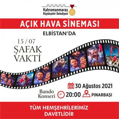 30 Ağustos Pazartesi - Elbistan - Pınarbaşı - 19.00 Konser / 20.00 Film Gösterimi