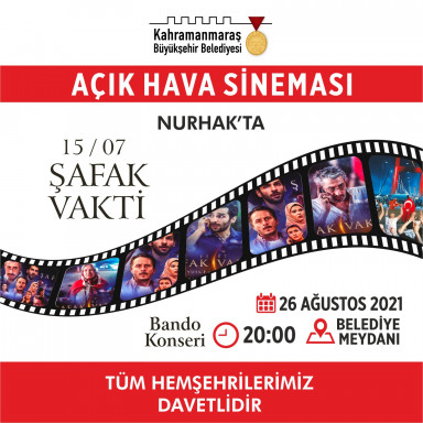 26 Ağustos Perşembe - Nurhak - Belediye Meydanı - 19.00 Konser / 20.00 Film Gösterimi