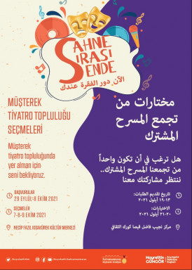 Geçtiğimiz yıl startı verilen “Sahne Maraş Tiyatro Okulu” eğitimlerine, bu sene yeni bir “kardeş” geliyor. “Müşterek Tiyatro Topluluğu” adıyla başlayacak yeni eğitim projesi ile mülteciler başta olmak üzere yabancı uyruklulara tiyatro eğitimi verilecek. Kültürel adaptasyonun sağlanması amacıyla başlatılan eğitimlere, 29 Eylül - 8 Ekim tarihleri arasında Necip Fazıl Kısakürek Kültür Merkezi’nden başvurulabilecek.