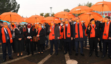 Şiddetin rakamlarla ifade edilemeyeceğini belirten Başkan Güngör konuşmasını, “Tek bir kadına kalkan el hepimize kalkıyor, bir kadının uğradığı şiddet iliklerimize kadar canımızı acıtıyor. Kahramanmaraş Büyükşehir Belediyesi olarak bizler de şehrimizdeki bu tip hadiselerin önüne geçmek maksadıyla azami gayret sarf ediyoruz. Bir yandan kadınlarımıza yönelik ücretsiz psikososyal destekler sağlarken, diğer yandan atölyeler ve meslek edindirme kurslarımızla ekonomik özgürlüklerini sağlayabilecekleri alanlar açıyoruz. Paydaş kurumlarımızla birlikte oluşturduğumuz projelerle tek arzumuz, kadınlarımızın daha güçlü olmalarını sağlamaktır. Bugün bir farkındalık oluşturma amacıyla toplu taşım araçlarımızı kadınlar için ücretsiz hale getirdik. Bu anlamlı günde, yeni dramların artık yaşanmadığı bir dünya diliyorum” şeklinde tamamladı. Büyükşehir Belediye Başkanı Hayrettin Güngör’ün konuşmalarının ardından katılımcılar kadına yönelik şiddete hayır diyerek turuncu balonları gökyüzüne bıraktı.