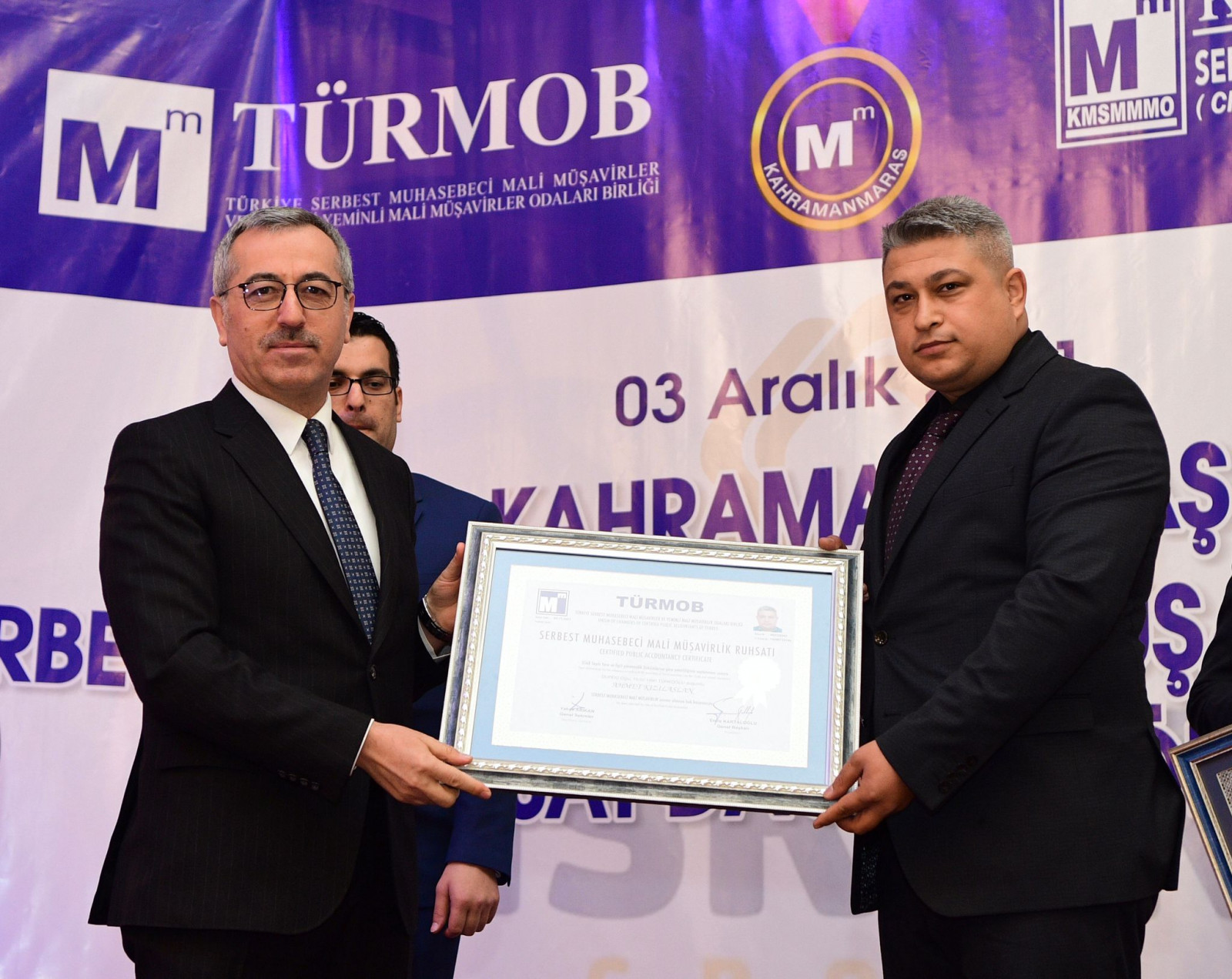 Kahramanmaraş Büyükşehir Belediye Başkanı Hayrettin Güngör, TÜRMOB ve Kahramanmaraş Serbest Muhasebeci Mali Müşavirler Odası iş birliğinde düzenlenen Ruhsat Dağıtım Töreni'ne katıldı. Düzenlenen programa Vali Ömer Faruk Coşkun, AK Parti Grup Başkanvekili Mahir Ünal, TÜRMOB Genel Başkanı Emre Kartaloğlu, Kahramanmaraş Serbest Muhasebeci Mali Müşavirler Odası Başkanı Atilla Sarıyıldız, protokol üyeleri, iş insanları ve ruhsat almaya hak kazanan mali müşavirler katıldı. Başkan Güngör programda yaptığı konuşmada, “En zorlu staj dönemlerinden birisi Mali Müşavirlik mesleğindedir. Üç yıllık bir staj dönemini başarıyla tamamlayıp bu ruhsatları almaya hak kazandınız. Mali Müşavirler vergi hukuku gibi özel konularda millet ve devlet arasında sarsılmaz bir köprü vazifesi görüyor. Meslek yaşamlarınızda başarılar diliyorum” diye konuştu. Program, lisans eğitimlerinin ardından stajlarını tamamlayarak ruhsatlarını almaya hak kazanan üyelere ruhsatlarının takdim edilmesi ve TÜRMOB Genel Başkanı Emre Kartaloğlu tarafından oda başkanlarına şilt takdimi ile sona erdi.