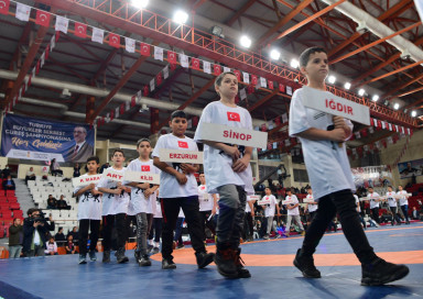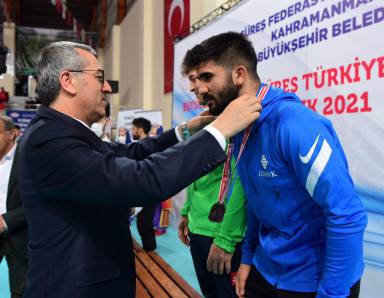 Kahramanmaraş Büyükşehir Belediye Başkanı Hayrettin Güngör, Türkiye Büyükler Serbest Güreş Şampiyonası’nın ödül törenine katıldı. Türkiye geneli 32 şehirden 600’ün üzerinde sporcunun katılımıyla gerçekleştirilen şampiyonada ödülleri Başkan Güngör’ün yanı sıra, Vali Ömer Faruk Coşkun ve Türkiye Güreş Federasyonu Başkanı Şeref Eroğlu verdi. Farklı sıkletlerde gerçekleştirilen final müsabakalarında şampiyonlar da belirlendi. 65 kiloda, M. Recep Aktaş birinci ve Hamza Alaca ikinci olurken, Mensur Bayoğu ve Ertuğrul Kahveci üçüncülüğü paylaştı. 74 kiloda ise Soner Demirtaş birinci, Samet Ak ikinci, Tarık Gür ve İsmet Çiftçi üçüncü oldu. Ağır sıklette ise 92 kilogramda Feyzullah Aktürk altın madalyanın sahibi olurken, Ahmet Bilici ikinci oldu. Üçüncülük kürsüsünü ise Samet Özarslan ve Erhan Yaylacı paylaştı.