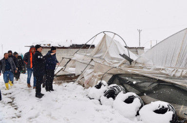 Kahramanmaraş Büyükşehir Belediye Başkanı Hayrettin Güngör, şehirde etkili olan kar yağışları sebebiyle seraları zarar gören üreticilerle bir araya geldi. Türkoğlu ve Dulkadiroğlu ilçelerinde beraberinde Kahramanmaraş Kabzımallar ve Komisyoncular Odası Başkanı Halit Orhan ile incelemelerde bulunan Büyükşehir Belediye Başkanı Hayrettin Güngör, vatandaşlara geçmiş olsun dileklerini iletti. Güngör, “Hemşerilerimizle, esnafımızda bir araya geldik. Seralarımızı yerinde gördük. Tabi son yılların en yoğun kar yağışı nedeniyle seralarımızda çökme olmuş. Bölgeyi yerinde inceledik. Kahramanmaraşımızda hatırı sayılır bir seracılık var. Şehrimiz için önemli bir üretim potansiyeli” diye konuştu.