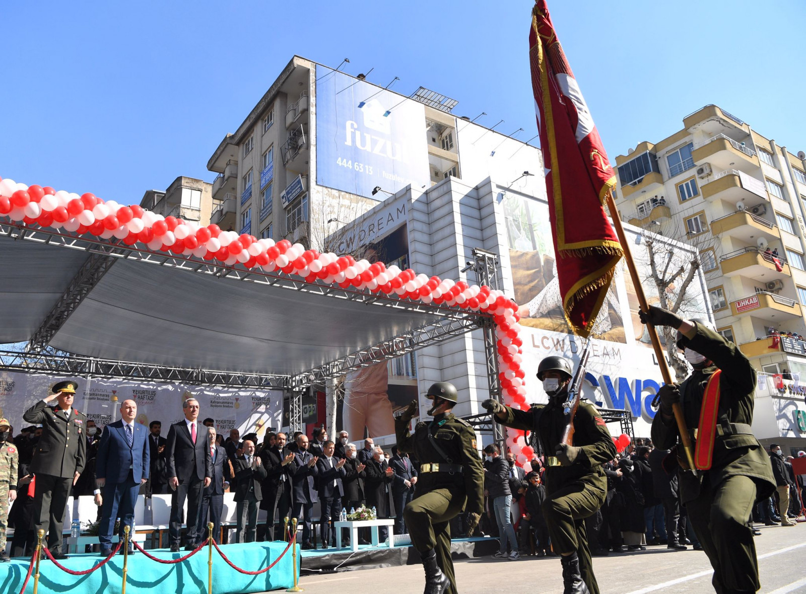 Kahramanmaraş’ın düşman işgalinden kurtuluşunun 102. yıl dönümü çeşitli etkinliklerle kutlandı. Büyükşehir Belediyesi tarafından Valilik Meydanı’nda düzenlenen 12 Şubat Kurtuluş Bayramı etkinliklerine vatandaşlar yoğun ilgi gösterdi. Programa Büyükşehir Belediye Başkanı Hayrettin Güngör’ün yanı sıra Vali Ömer Faruk Coşkun, AK Parti Grup Başkanvekili Mahir Ünal, Garnizon Komutanı Emin Mehmet Terzioğlu, İçişleri Komisyon Başkanı Celalettin Güvenç, Kahramanmaraş Milletvekilleri Habibe Öçal, Ahmet Özdemir, Mehmet Cihat Sezal, Sefer Aycan ve Ali Öztunç, ilçe belediye başkanları, STK temsilcileri ile çok sayıda vatandaş katıldı.