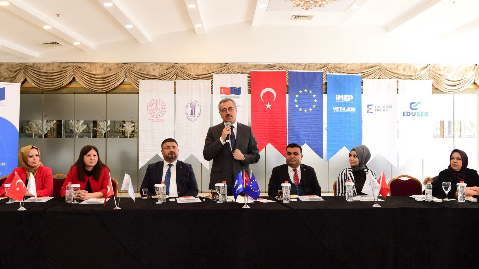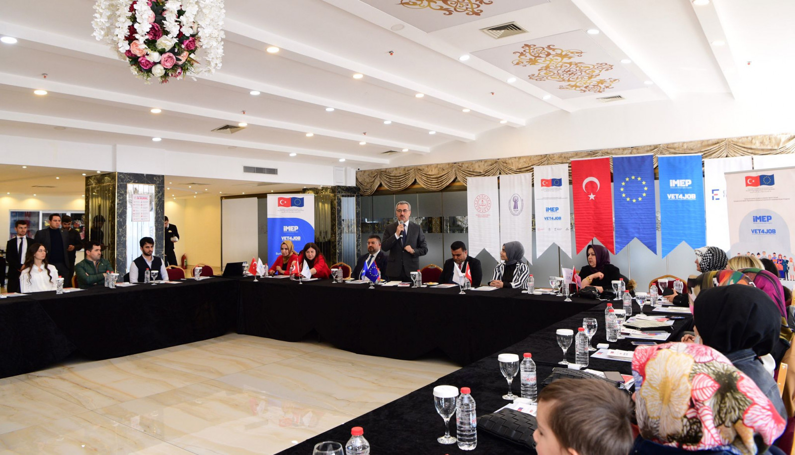 Kahramanmaraş Büyükşehir Belediye Başkanı Hayrettin Güngör, Avrupa Birliği’nin finansal desteği, Milli Eğitim Bakanlığı ve Türkiye Esnaf ve Sanatkârları Konfederasyonu iş birliğiyle hayata geçirilen İstihdam için Mesleki Eğitim Programı (İMEP) kapsamında Kahramanmaraş Terziler ve Konfeksiyoncular Odası’nın kadın üyelerine yönelik düzenlenen eğitim seminerine katıldı. Gerçekleştirilen etkinliğe Başkan Güngör’ün yanı sıra Büyükşehir Meclis Üyesi Ramazan Kibar, Kahramanmaraş Terzi ve Konfeksiyoncular Odası Başkanı Muhlis Akkurt, İl Koordinatörü Gül Ayşe Yetmez, Kahramanmaraş Terziler ve Konfeksiyoncular Odası’nın kadın üyeleri ve ilgili kurumların temsilcileri yer aldı. Kadın esnaflar desteklerinden dolayı Büyükşehir Belediye Başkanı Hayrettin Güngör’e teşekkür ettiler.