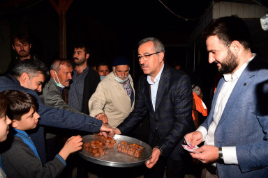 TÜGVA İl Temsilciliğinin düzenlediği iftar yemeğine katılan Başkan Güngör, teravih namazının ardından Bertizliler Camii’nde vatandaşlarla bir araya gelerek tatlı ikramında bulundu.