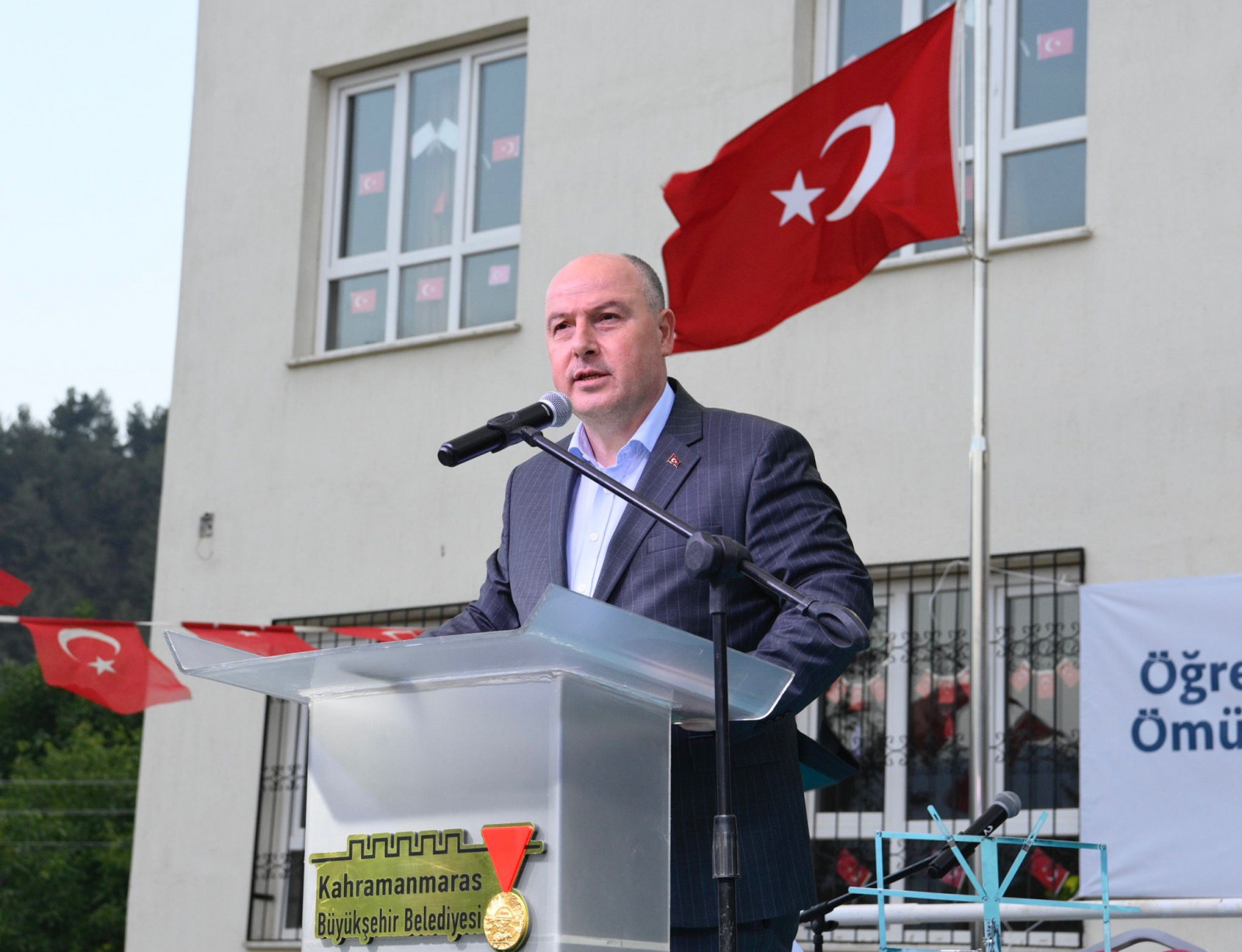 Kahramanmaraş Büyükşehir Belediye Başkanı Hayrettin Güngör, Türkoğlu Doluca Şehit Ali Can Ortaokulu öğrencilerinin mezuniyet törenine katıldı. Okul bahçesinde gerçekleştirilen mezuniyet töreninde Başkan Hayrettin Güngör’ün yanı sıra Vali Ömer Faruk Coşkun, Türkoğlu Kaymakamı Mahmut Hersanlıoğlu, İl Milli Eğitim Müdürü Yusuf Kahraman, protokol üyeleri, okul idarecileri, öğretmenler, öğrenciler ve aileleri de yer aldı. Mezuniyet töreninde Başkan Hayrettin Güngör ve protokol üyeleri, okulu dereceyle bitiren öğrencilere mezuniyet belgelerini takdim etti.