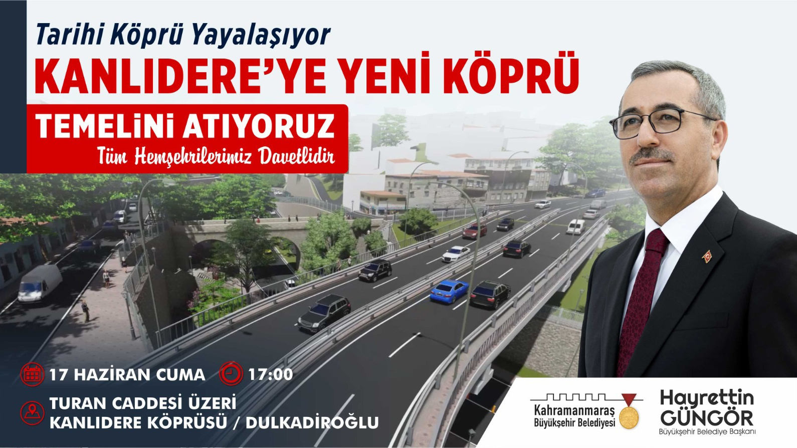 Kahramanmaraş Büyükşehir Belediyesi, şehirde ulaşım altyapısını güçlendirmek için yatırımlarını bir bir hayata geçirmeye devam ediyor. Bu kapsamda saha çalışmalarına başlanan Yeni Kanlıdere Köprüsü’nün temeli atılıyor. Toplamda 56 metre uzunluğa ve 17 metre genişliğe sahip köprünün Kahramanmaraş için önemini vurgulayan Başkan Hayrettin Güngör, “Sarayaltı – Kanlıdere – Kale bağlantı yolu projesi kapsamında yeni köprümüzün yapımına başladık. 30 Milyon TL’lik yatırımla bölgeye, 56 metre uzunluğunda ve 17 metre genişliğinde yeni bir köprü inşa ediyoruz. 17 Haziran Cuma günü saat 17.00’de yeni köprümüzün temelini atacağız. Şehrimize ve hemşehrilerimize hayırlı olsun” dedi. Büyükşehir Belediyesi’nden yapılan açıklamada, “Kanlıdere Köprüsü üzerinde gerçekleştirilecek törene tüm vatandaşlarımız davetlidir” ifadelerine yer verildi.