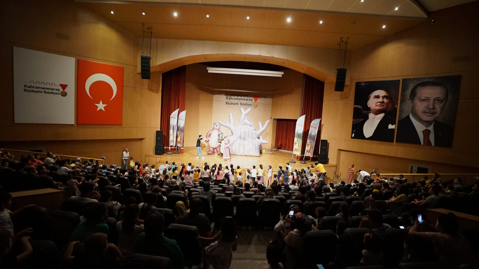 Kahramanmaraş Büyükşehir Belediyesi, kültür sanat etkinliklerini Kahramanmaraşlılarla buluşturmaya devam ediyor. Şehirde farklı yaş gruplarına yönelik etkinlikler düzenleyen Büyükşehir Belediyesi, çocuklar tarafından sevilerek izlenen çizgi film karakterlerinden ‘Maşa ile Koca Ayı’ ve ‘Ege ile Gaga’ müzikal çocuk tiyatrolarını miniklerle buluşturdu. Mehmet Akif Ersoy Kültür Merkezi’nde gerçekleştirilen etkinliklere çocuklar yoğun ilgi gösterdi. Renkli anlara sahne olan etkinliklerde çocuklar doyasıya eğlendi. Miniklere unutulmaz bir gün yaşatan ‘Maşa ile Koca Ayı’ ve ‘Ege ile Gaga’ müzikalleri bir yandan eğlendirirken bir yandan da öğretti. Çocukların adeta akın ettiği etkinlikte ebeveynler, gerçekleştirilen program dolayısıyla Büyükşehir Belediyesi’ne teşekkür etti.