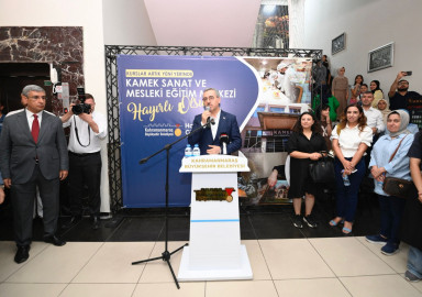 Kahramanmaraş Büyükşehir Belediyesi Meslek Edindirme ve Sanat Eğitimi Kursları’nın (KAMEK) yeni hizmet noktası açılış programı gerçekleştirildi. Mehmet Akif Ersoy Kültür Merkezi’nin yanındaki eski belediye binasının yenilenmesiyle oluşturulan KAMEK Sanat ve Mesleki Eğitim Merkezi açılışına Büyükşehir Belediye Başkanı Hayrettin Güngör’ün yanı sıra Vali Ömer Faruk Coşkun, MHP Kahramanmaraş Milletvekili Sefer Aycan, Onikişubat Belediye Başkanı Hanefi Mahçiçek, AK Parti Onikişubat İlçe Başkanı Mücahit Kara, protokol üyeleri ve vatandaşlar katıldı. Kahramanmaraşlı usta yazar Vehbi Vakkasoğlu’nun da yer aldığı açılış programı, kurdele kesim töreni ve protokol konuşmalarının ardından atölye ziyaretleriyle noktalandı.