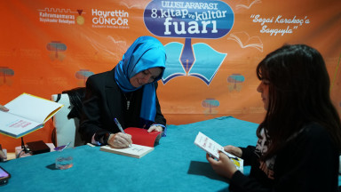 Kahramanmaraş 8. Uluslararası Kitap ve Kültür Fuarı’nda söyleşi etkinliğinde kitapseverlerle bir araya gelen Yazar Hatice Kübra Tongar, etkinliğin ardından kitaplarını okurları için imzaladı.