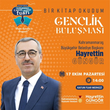 Kahramanmaraş 8. Uluslararası Kitap ve Kültür Fuarı’nda Büyükşehir Belediye Başkanı Hayrettin Güngör de kültür sanat dostlarıyla bir araya gelecek. 17 Ekim Pazartesi günü KAFUM A Salonu’nda düzenlenecek etkinlik saat 14.00’da başlayacak.
