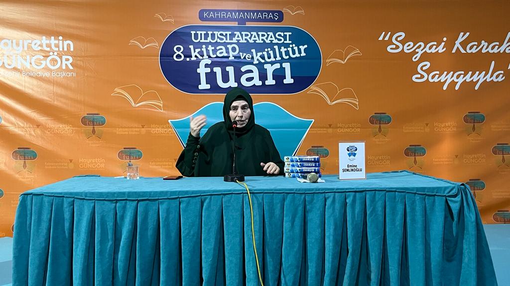 Türk edebiyatının nabzı Kahramanmaraş Büyükşehir Belediyesi tarafından Kahramanmaraş Fuar Merkezi’nde (KAFUM) düzenlenen 8. Uluslararası Kitap ve Kültür Fuarı’nda tutuluyor. Araştırmacı – Yazar Emine Şenlikoğlu, fuar kapsamında düzenlenen söyleşi etkinliğinde Kahramanmaraşlılarla buluştu. Edebiyat literatürüne İslam ve akaid çerçevesinde pek çok eser kazandıran usta kalemin söyleşisi, yediden yetmişe okurların yoğun ilgisiyle karşılandı. Şenlikoğlu ise gösterilen ilgiden memnun olduğunu belirterek, Büyükşehir Belediyesi’ne teşekkür etti.