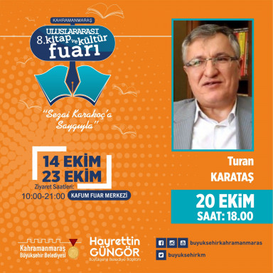 8. Uluslararası Kitap ve Kültür Fuarı kapsamında 20 Ekim Perşembe günü AK Parti MKYK Üyesi Burhan Sakallı ve Müzisyen Selçuk Küpçük’ün katılımlarıyla “Maraşlı Şairlerden Bestelenmiş Şiirler” temalı etkinlik gerçekleştirilecek. Birbirinden değerli eserlerin seslendirileceği etkinlik saat 19.00’da başlayacak.