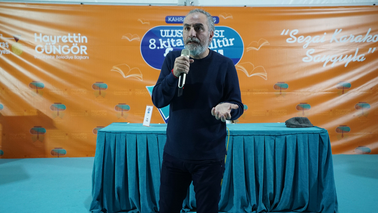 Büyükşehir Belediyesi tarafından düzenlenen Uluslararası 8. Kitap ve Kültür Fuarı’nda kitapseverlerle bir araya gelen Yazar Tarık Tufan, “Kahramanmaraş’a gelmenin biz edebiyatçılar için ayrı bir tarafı var. Buraya gelirken hem ilhamla hem saygıyla hem de bu şehrin o büyük duygusundan pay kapabilmek için heyecan ve hevesle geliyoruz. Güzel insanların, güzel edebiyatçıların şehrinde okurlarla buluşmak, sohbet etmek benim için çok mutluluk verici” dedi.