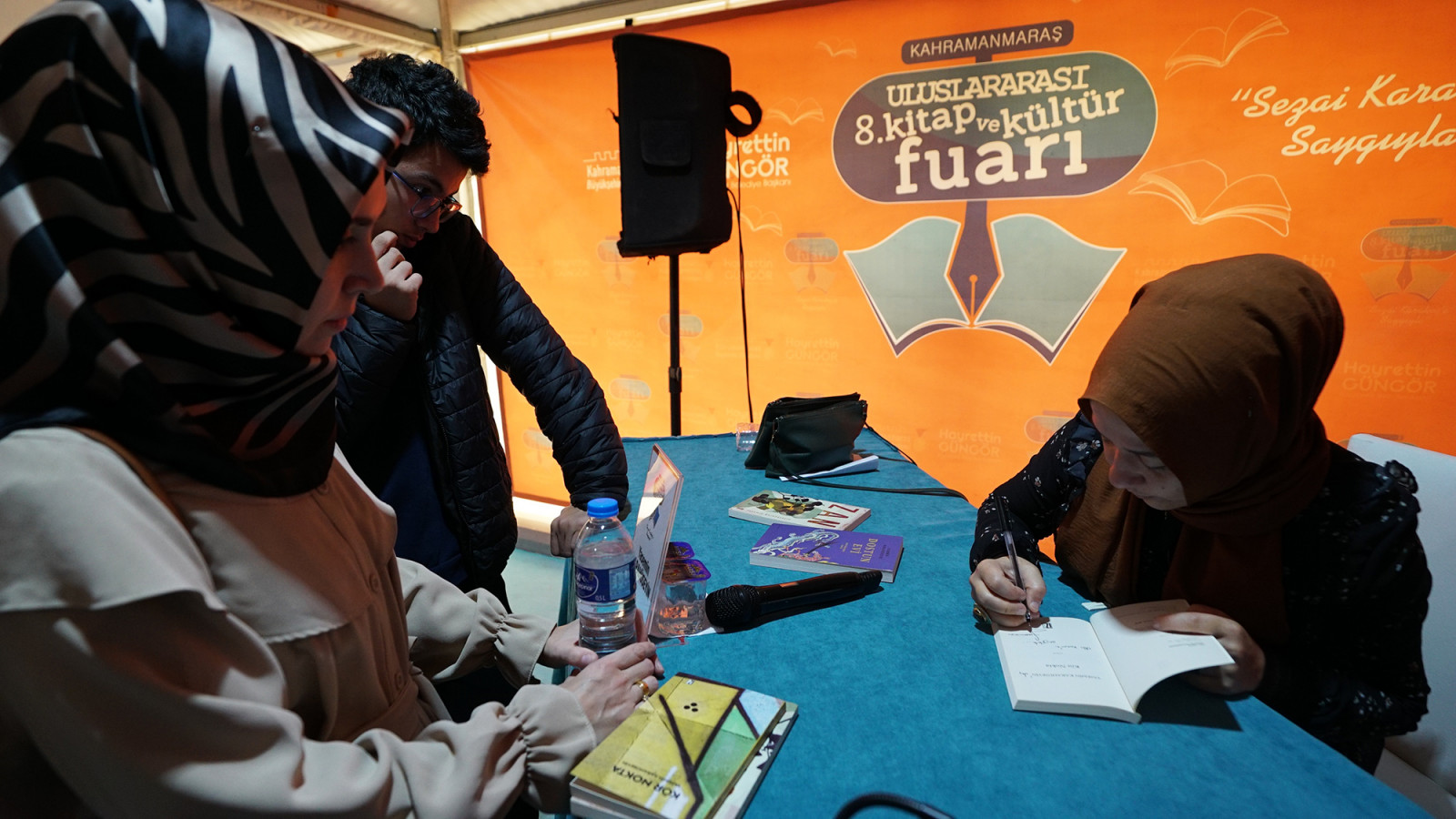 Uluslararası 8. Kitap ve Kültür Fuarı’nın son gününde Yasemin Karahüseyin, Murat Tavlı ve Fatih Akbaba, edebiyatseverlerle buluştu. Etkinlik sonrası açıklamalarda bulunan Murat Tavlı, “Evimizden kilometrelerce uzakta okurlarımızla bir araya geldik. Çok önemli bir şehirdeyiz. Burası çok büyük şairlerin, yazarların harmanlandığı bir şehir” dedi.
