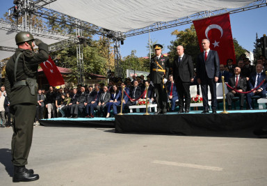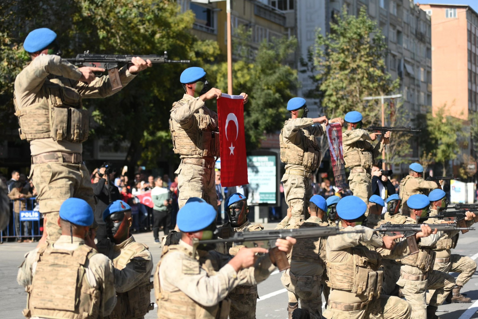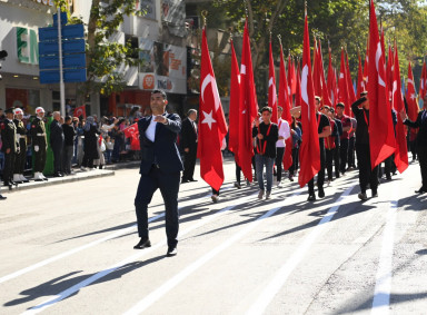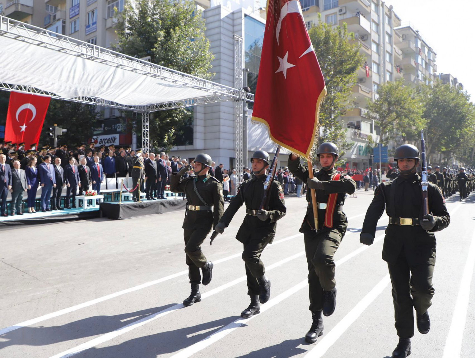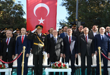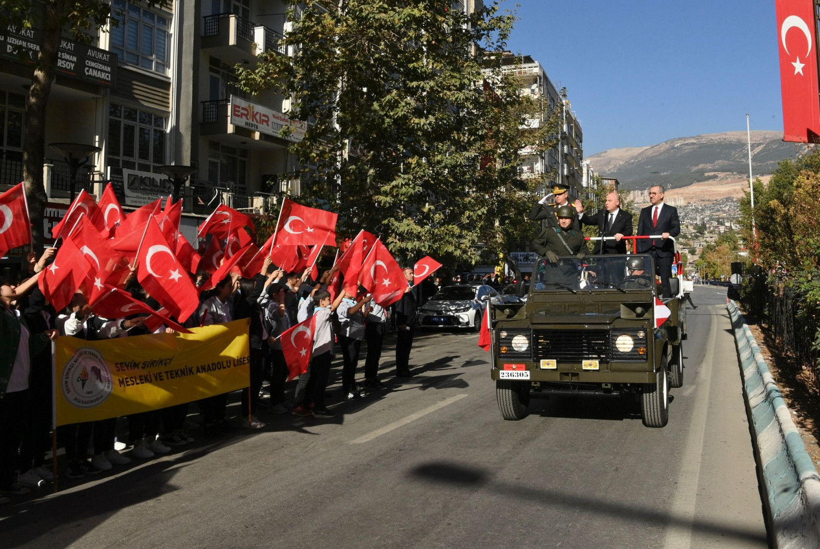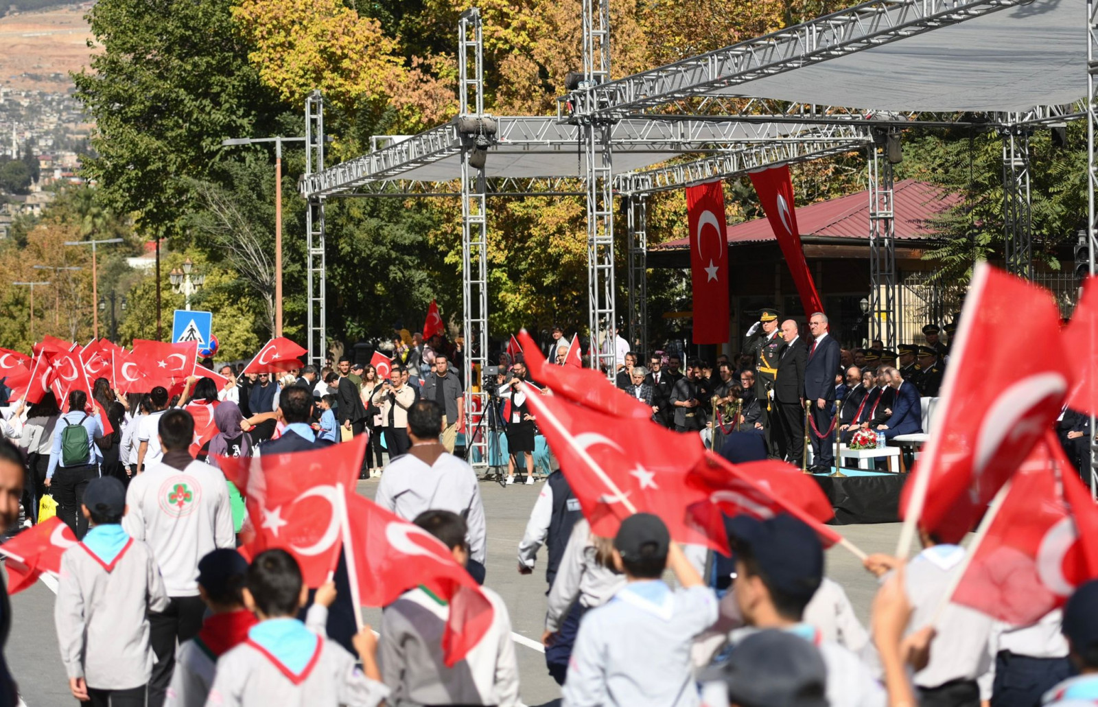 Cumhuriyetin kuruluşunun 99. yıl dönümü tüm yurtta olduğu gibi Kahramanmaraş’ta da büyük bir coşkuyla kutlandı. Valilikte gerçekleştirilen tebrik kabulüyle başlayan Cumhuriyet Bayramı kutlamaları, Valilik Meydanı’nda düzenlenen coşku dolu törenle devam etti. Programda Büyükşehir Belediye Başkanı Hayrettin Güngör’ün yanı sıra Vali Ömer Faruk Coşkun, 54’üncü Hükümet Milli Eğitim Bakanı Mehmet Sağlam, Garnizon Komutanı Tuğgeneral Emin Mehmet Terzioğlu, Kahramanmaraş Cumhuriyet Başsavcısı Sedat Çelik, KSÜ Rektörü Prof. Dr. Alptekin Yasım, kaymakamlar, protokol üyeleri, ilçe belediye başkanları, kurum müdürleri, STK ve siyasi parti temsilcileri ile vatandaşlar da yer aldı. Cumhurbaşkanı Recep Tayyip Erdoğan’ın 29 Ekim Cumhuriyet Bayramı mesajının okunduğu törende, öğrenciler okudukları şiirlerle katılımcılardan yoğun alkış aldı. Halk oyunları ve Jandarma Komando Birliği gösterilerinin de yapıldığı Cumhuriyet Bayramı kutlamaları; öğrenciler, gaziler, STK temsilcileri ve askeri birliklerin geçit töreniyle noktalandı.