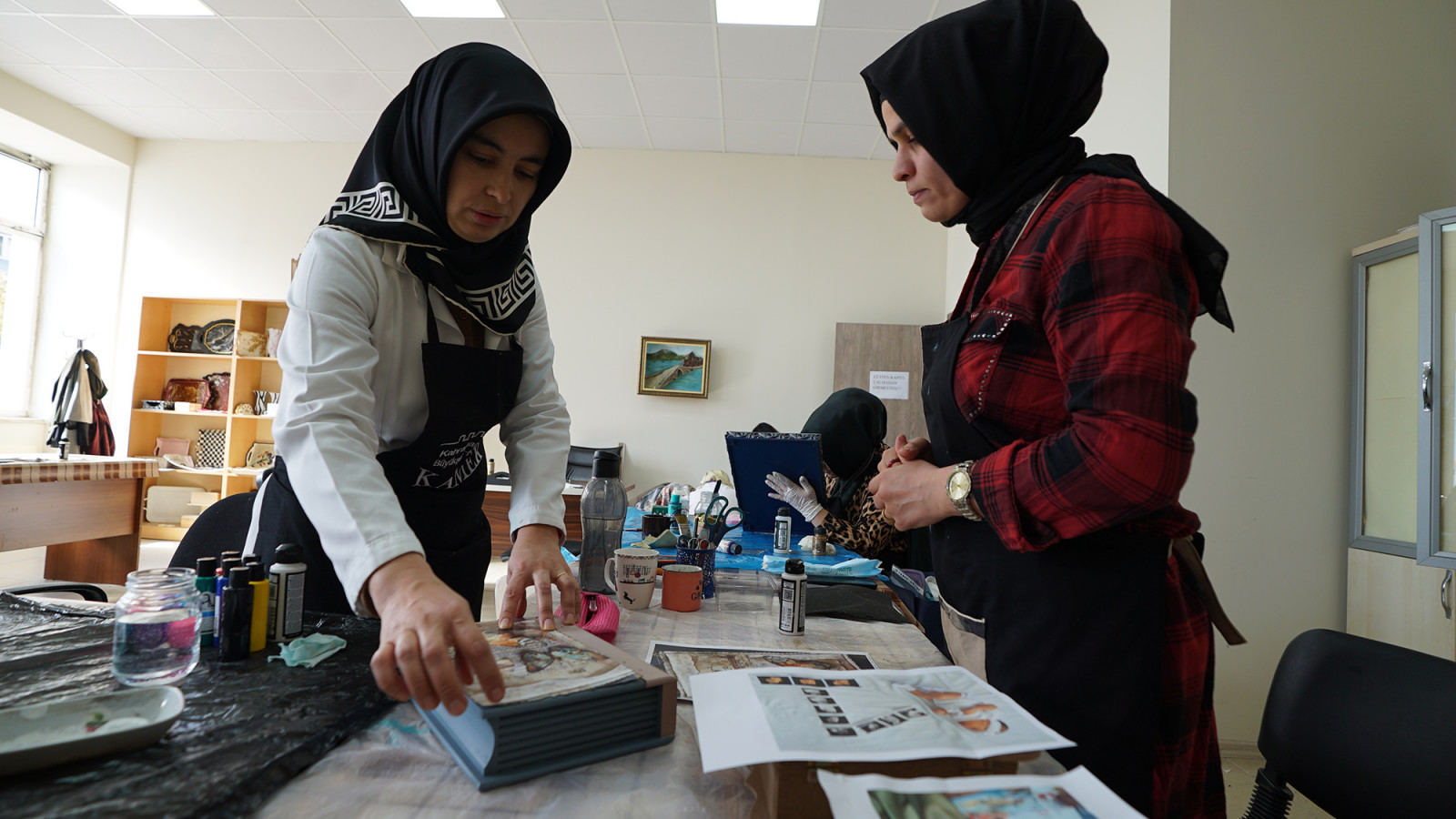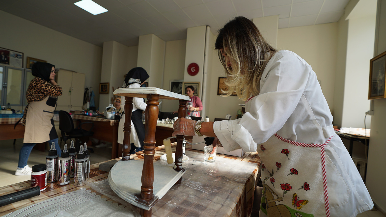 Kahramanmaraş Büyükşehir Belediyesi, sosyal belediyecilik hizmetleri çerçevesinde kültür ve sanat faaliyetlerini vatandaşlarla buluşturmaya devam ediyor. Vatandaşların el becerilerini geliştirmek ve mesleki yeteneklerini artırmalarına katkıda bulunmak için hayata geçirilen Meslek Edindirme ve Sanat Eğitimi Kursları (KAMEK) 36 branş ve bin 59 kursiyerle yeni eğitim dönemine başladı. Büyükşehir Belediyesi KAMEK Kurs Merkezi’nde kursiyerlere verilen eğitimlerden bir tanesi de Ahşap Boyama Atölyesi oldu. Atölyede kursiyerlere uzman eğitmenler tarafından boyama, dekupaj ve transfer teknikleri gibi çeşitli eğitimler veriliyor. Ahşap Boyama Atölyesi’nde eğitim alan kursiyerler, eğitimlerin kendilerine çok katkı sağladığını belirterek Büyükşehir Belediyesi’ne teşekkür etti.