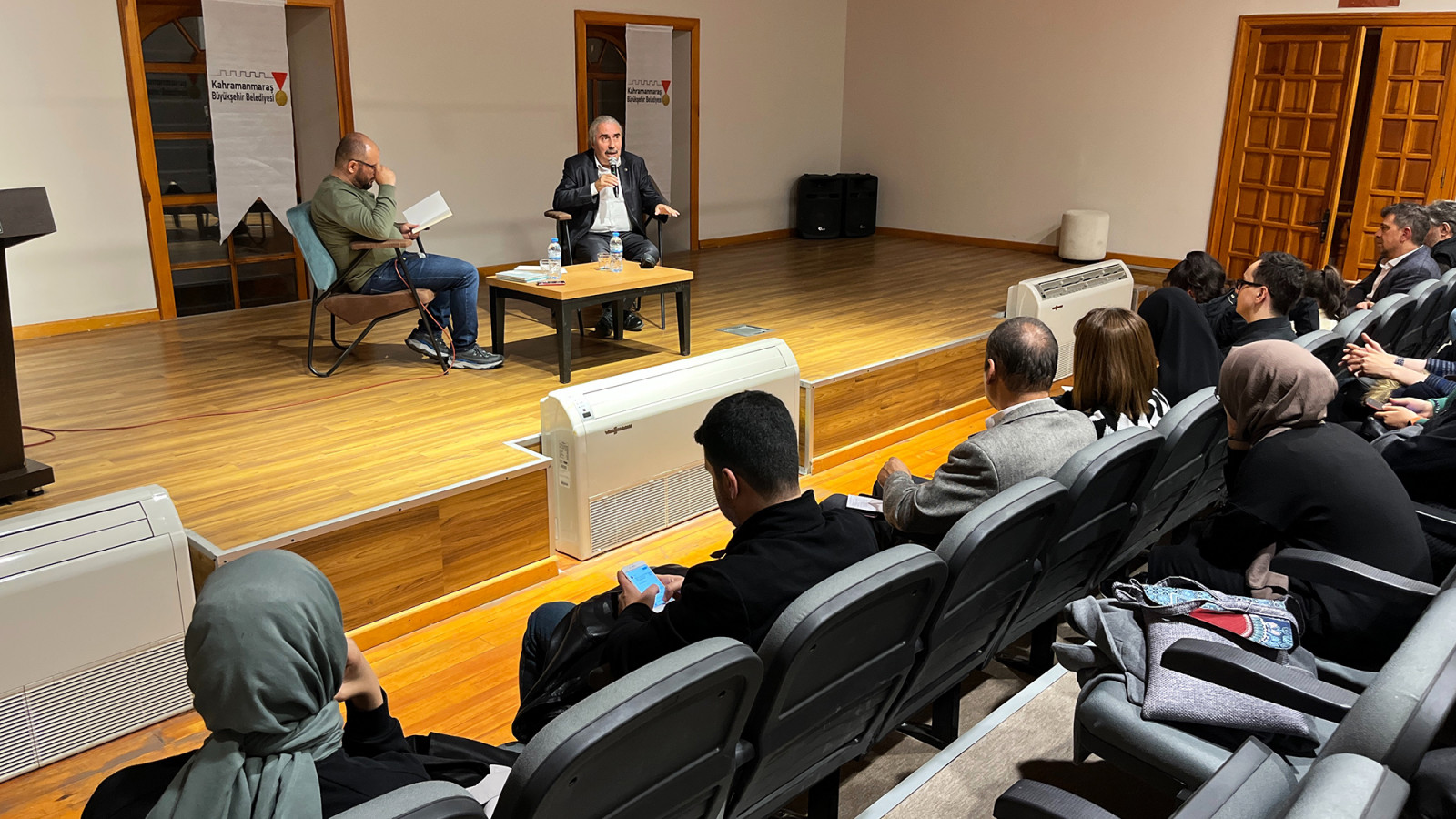 Kahramanmaraş Büyükşehir Belediyesi, şiir ve edebiyatın başkentinde kültür sanat etkinliklerini vatandaşlarla buluşturmaya devam ediyor. Sezai Karakoç Kültür Sanat Sezonu kapsamında, Şair - Yazar Ali Ural’ın katılımıyla ‘Şairin Aynası’ konulu Evelâhir Söyleşileri etkinliği gerçekleştirildi. Yedi Güzel Adam Edebiyat Müzesi’nde Yazar Ömer Yalçınova moderatörlüğünde gerçekleştirilen etkinlikte; şairin dünyadaki yeri, dünyayı algılama biçimi, edebiyatın toplumsal hayata tesiri, şiirin Türk Edebiyatı’ndaki konumu gibi pek çok konu usta yazar Ali Ural tarafından farklı açılardan ele alındı. Edebiyatseverlerin büyük bir dikkatle takip ettiği söyleşide Ural, yazın hayatı hakkında da katılımcılara bilgiler aktardı.