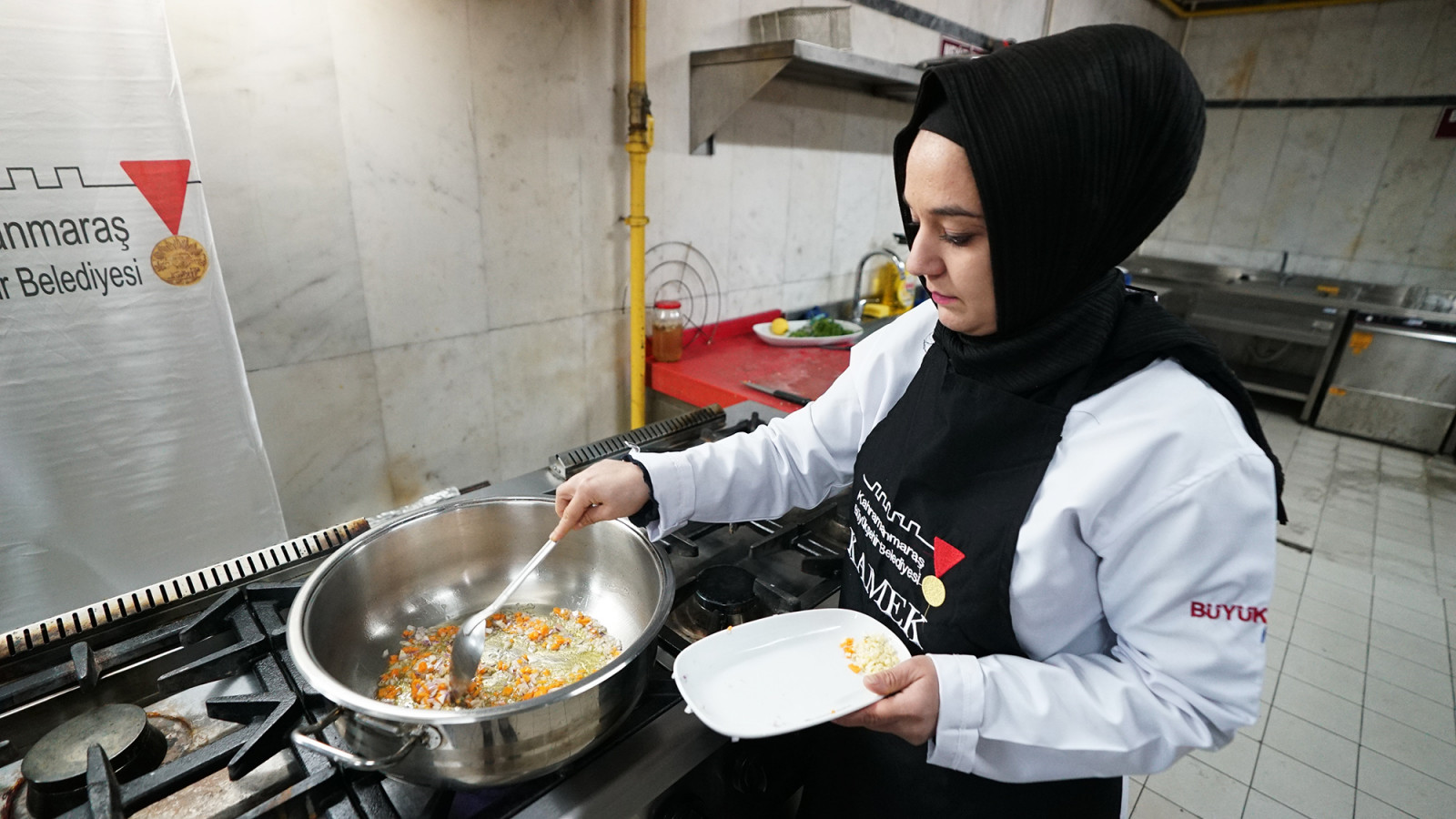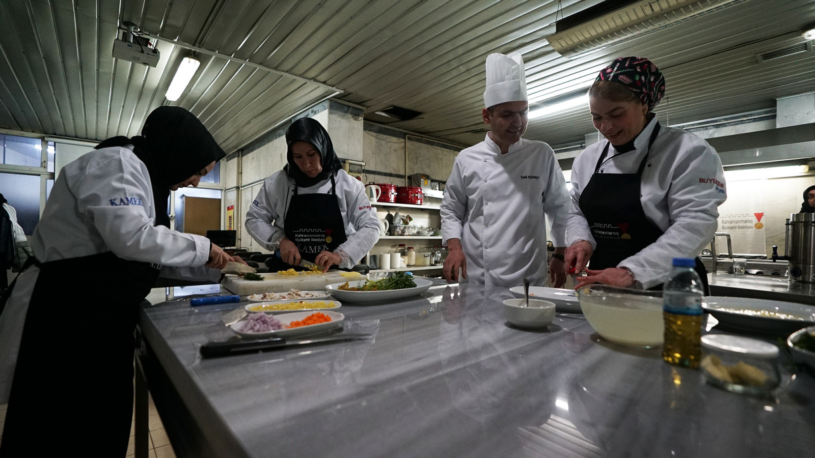 Kahramanmaraş Büyükşehir Belediyesi bünyesinde faaliyet gösteren Meslek Edindirme ve Sanat Eğitimi Kursları, 36 farklı branşta bin 59 kursiyeriyle eğitimlerini sürdürüyor. KAMEK’te en çok talep gören eğitimlerden birisi de Aşçı Yardımcılığı Kursu oldu. Kursta uzman eğitmenler tarafından verilen teorik bilgilerin yanı sıra kursiyerler, Büyükşehir Belediyesi’nin profesyonel mutfaklarında yaptıkları pratik eğitimlerle el becerilerini ve yeterliliklerini geliştiriyor. Toplamda 3 ay sürecek eğitimleri başarıyla tamamlayan katılımcılar, Milli Eğitim Bakanlığı onaylı Aşçı Yardımcılığı sertifikası almaya hak kazanacak. Kursiyerler KAMEK’te aldıkları eğitim ve sertifikayla çeşitli otellerde ve dünya mutfaklarında çalışma imkânı buluyor.