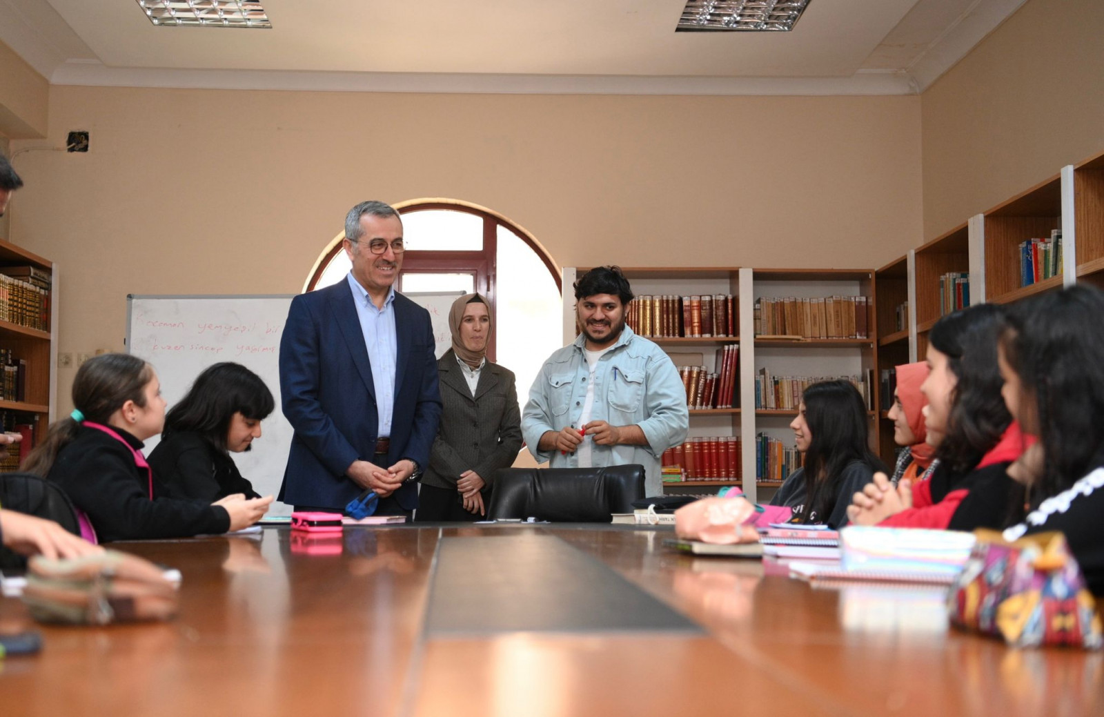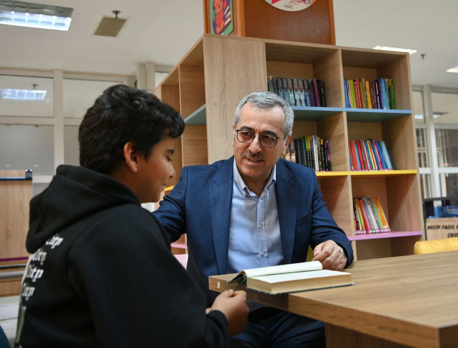 Necip Fazıl Kısakürek Kültür Merkezi Kütüphanesi’nde çocuk ve gençlerle bir araya gelen Başkan Hayrettin Güngör, “Geleceğimizin teminatı gençlerimizle bir araya gelmek, yüzlerindeki tebessüme şahit olmak mutluluk verici. Tüm gençlerimize eğitim hayatlarında başarılar diliyorum” dedi.