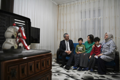 Şehrin çeşitli bölgelerinde ev ziyaretlerini sürdüren Kahramanmaraş Büyükşehir Belediye Başkanı Hayrettin Güngör, vatandaşlarla bir araya gelmeye devam ediyor. Bu kapsamda Başkan Hayrettin Güngör, eşi Leyla Güngör ile birlikte Onikişubat Necip Fazıl Mahallesi’nde bir dizi ev ziyareti gerçekleştirdi. Gün boyu birçok aileyi ziyaret eden Güngör, hane halkının taleplerini dinlerken çocuklarla da yakından ilgilendi. Hediyelerle çocukların yüzünü güldüren Başkan Hayrettin Güngör, nazik misafirperverlikleri için tüm vatandaşlara teşekkür etti.