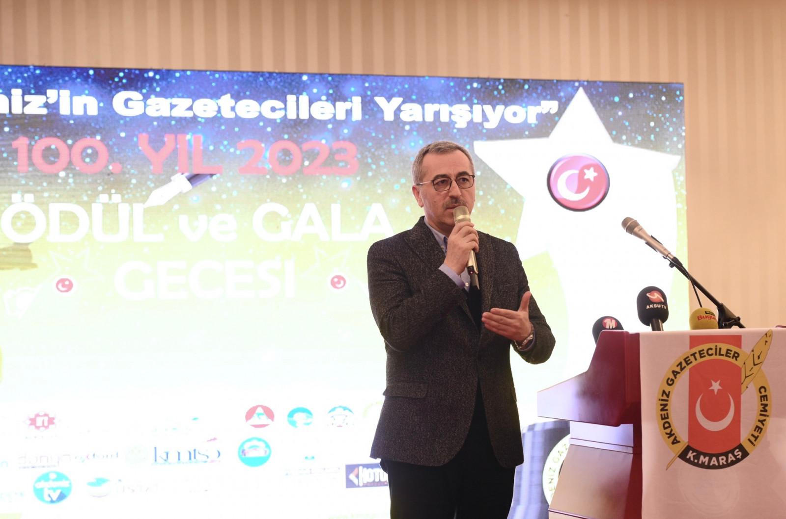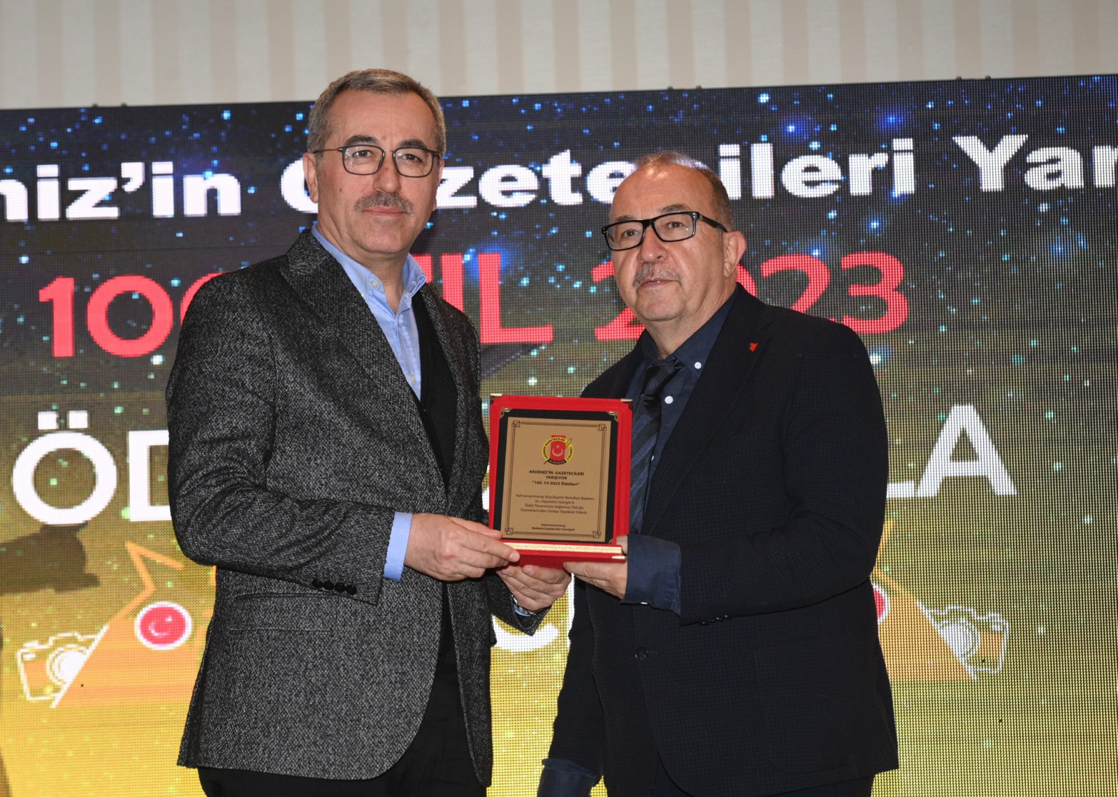 Kahramanmaraş Büyükşehir Belediye Başkanı Hayrettin Güngör, Kahramanmaraş Akdeniz Gazeteciler Cemiyeti tarafından bu yıl ilki düzenlenen “Akdeniz’in Gazetecileri Yarışıyor” programının ödül töreni ve gala gecesine katıldı. Ödül töreninde; Vali Ömer Faruk Coşkun, AK Parti Kahramanmaraş Milletvekilleri Ahmet Özdemir, Cihat Sezal ve Habibe Öçal, KSÜ Rektörü Prof. Dr. Alptekin Yasım, KİÜ Rektörü Prof. Dr. İsmail Bakan, AK Parti Yerel Yönetimler Başkan Yardımcısı Veli Böke, ilçe belediye başkanları, oda başkanları ve basın mensupları da yer aldı. Saygı duruşu ve İstiklal Marşı’nın okunmasıyla başlayan program, son 2 yıl içerisinde ahirete göç eden basın mensuplarının hayatını anlatan kısa film gösterimi ile devam etti. ‘100. Yıl 2023 Ödülleri’ temalı yarışmada; Haber, Fotoğraf, Görüntü, TV Programı, Tasarım, Köşe Yazarı, Spor Haberi ve İnternet Portalı olmak üzere toplamda 8 kategoride ödül sahipleriyle buluştu. Büyükşehir Belediye Başkanı Hayrettin Güngör ve protokol üyeleri, ödülleri basın mensuplarına takdim ederek başarılarının devamını diledi. Program, Türk Halk Müziği Sanatçısı Hatice Gökçeli ve Furkan Pehlivan konseriyle noktalandı.