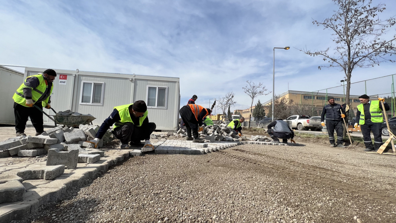 Kahramanmaraş Büyükşehir Belediyesi, ülkenin dört bir yanından yardıma gelen belediyelerin de destekleriyle şehir genelinde afet ve acil durum yönetim çalışmalarını sürdürüyor. Vatandaşların barınma ihtiyaçlarının karşılanması noktasında Karacasu Kampüsü’ne inşa edilen Geçici Konaklama Merkezi – konteyner alanında da bir dizi çalışma gerçekleştiriliyor. Kahramanmaraş Büyükşehir Belediyesi Fen İşleri Dairesi Başkanlığı koordinesinde yürütülen ve diğer belediyelerin de destekleriyle gerçekleştirilen çalışmalarla bölgeye kilit parke ve sıcak asfalt kazandırılıyor. Yoğun bir şekilde devam eden çalışmalarla konteyner alanının ulaşımı üst seviyeye çıkarılıyor. Çalışmaların kısa süre içerisinde tamamlanmasıyla Karacasu Geçici Konaklama Merkezi’nin depremzedelerin kullanımına sunulması hedefleniyor.