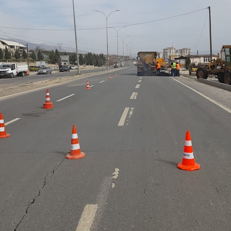 Büyükşehir Belediyesi, depremde hasar alan yollarda yenileme çalışmalarına kesintisiz devam ediyor.