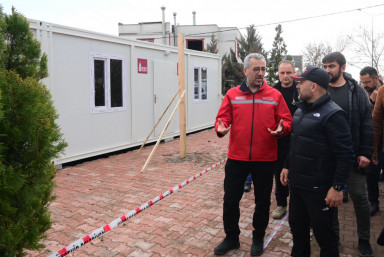 Yapımı süren prefabrik çarşı ile vatandaşların yerleşmeye başladığı geçici barınma merkezlerinde incelemelerde bulunan Başkan Hayrettin Güngör, “İnşa edilen geçici barınma merkezlerine hemşehrilerimiz yerleşmeye başladı. Esnafımız için de prefabrik çarşılar oluşturuyoruz. Koordinasyon içerisinde çalışmalarımız devam ediyor” dedi.