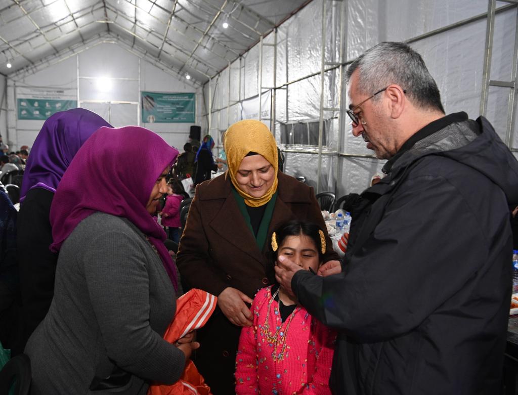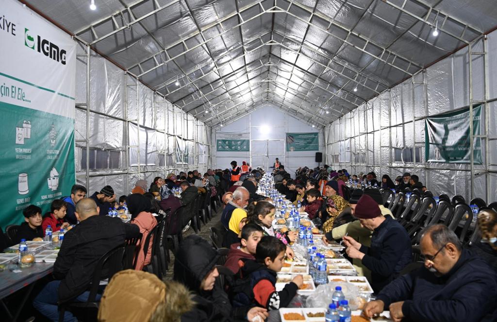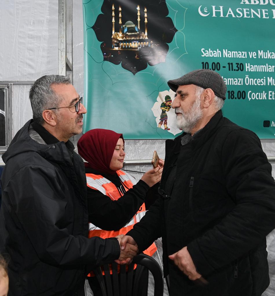 Kahramanmaraş Büyükşehir Belediye Başkanı Hayrettin Güngör, Hasene Vakfı tarafından Abdülhamid Han Camii’nde kurulan iftar çadırında vatandaşlarla bir araya gelerek orucunu açtı. Birlik ve beraberliğe vesile olan iftar sofralarını tek tek ziyaret ederek vatandaşlarla bir araya gelen ve Ramazan aylarını tebrik eden Başkan Güngör, “Ramazan’ın manevi ikliminden ve bereketinden hep birlikte istifade etmek için her gün şehrimizin farklı bir noktasında iftar sofralarında hemşehrilerimizle bir araya gelerek orucumuzu açıyoruz. Bu akşam da Hasene Vakfı tarafından Abdülhamid Han Camii’nde düzenlenen iftar programında hemşehrilerimizle birlikte iftar yaptık. Çok sayıda gönüllüsü ile depremin yol açtığı yaraları sarmak için yoğun gayret gösteren, Ramazan ayında da her gün bin kişilik iftar yemeği veren ve çeşitli etkinlikleri hemşehrilerimizle buluşturan vakfımıza ve hayırseverlerimize teşekkür ediyoruz. Rabbim hayırlarını kabul eylesin” dedi.