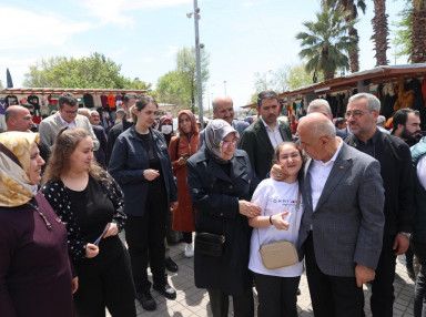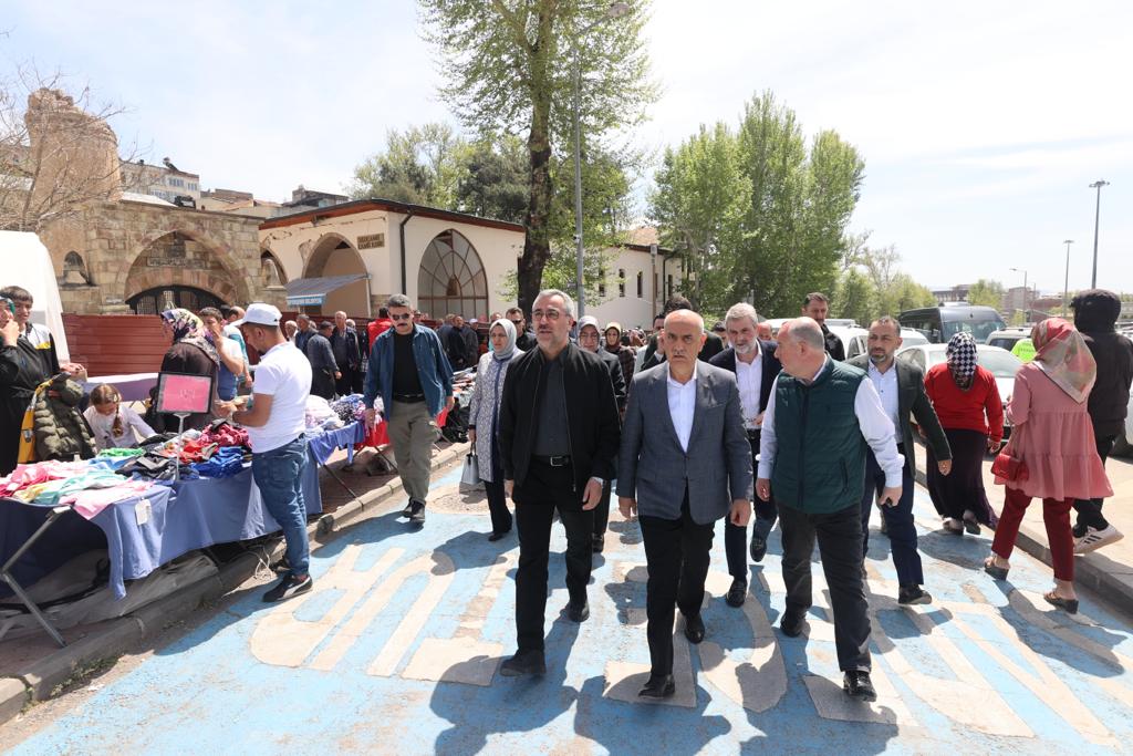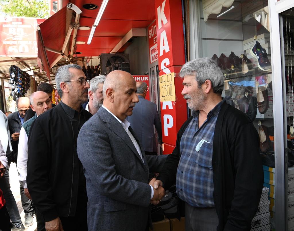 Kahramanmaraş Büyükşehir Belediye Başkanı Hayrettin Güngör, Tarım ve Orman Bakanı ve AK Parti Kahramanmaraş Milletvekili Adayı Prof. Dr. Vahit Kirişci ile Tarihi Kapalı Çarşı ve bölgeye inşa edilen geçici iş yerlerinde faaliyet gösteren esnafları ziyaret etti. Vali Ömer Faruk Coşkun ve AK Parti İl Başkanı Fırat Görgel’in de yer aldığı ziyarette esnafların taleplerini dinleyen ve hayırlı işler dilekleri ileten Başkan Güngör ve Bakan Kirişci, vatandaşlarla da sohbet etti. Ziyarete ilişkin açıklamalarda bulunan Başkan Güngör, “Şehrimizin yeniden imarı ve hayatın normale dönmesi noktasında devlet millet el birliğiyle yoğun gayret gösteriyoruz. Bakanımız ve milletvekili adayımız Sayın Vahit Kirişci, Valimiz ve İl Başkanımızla birlikte Kapalı Çarşı ve bölgede kurulan geçici iş yerlerinde faaliyetlerini sürdüren esnaflarımızı ziyaret ederek işlerinde sürur ve bereket diledik, Kadir Gecelerini tebrik ettik. İnşallah el birliğiyle Kahramanmaraş’ımızı çok daha iyi bir şekilde ayağa kaldıracağız. Rabbim birliğimizi, dirliğimizi daim eylesin” dedi.