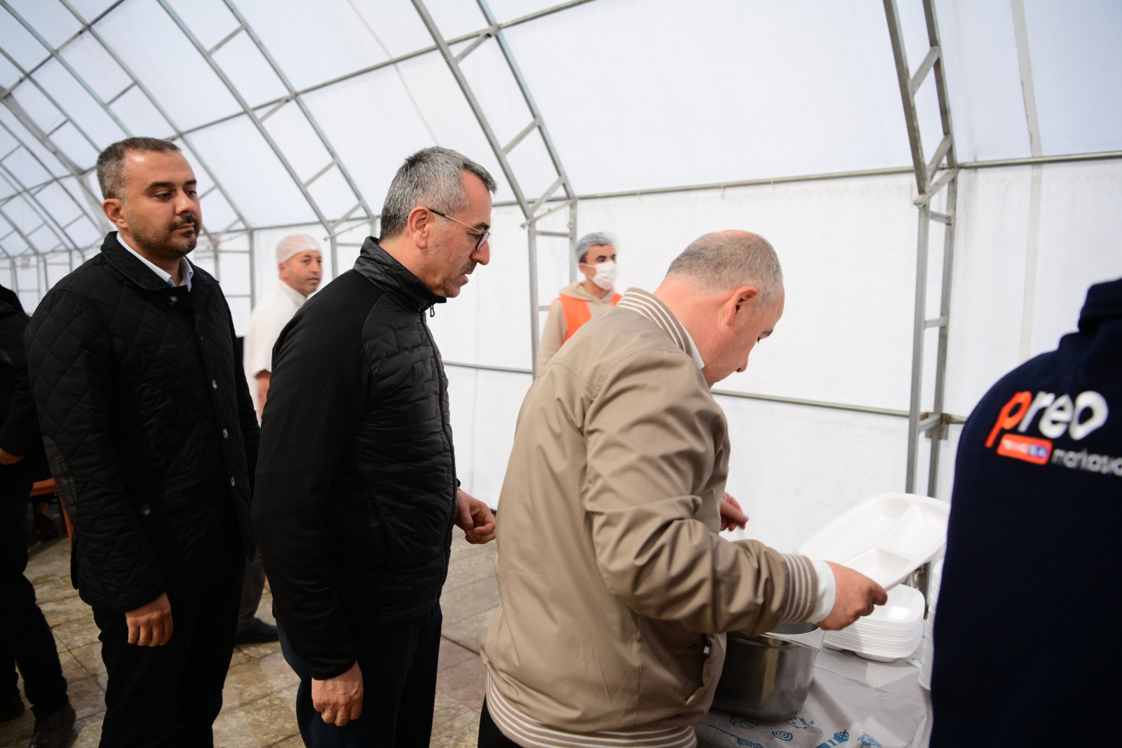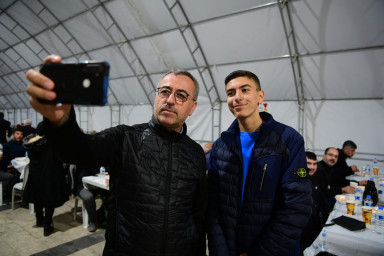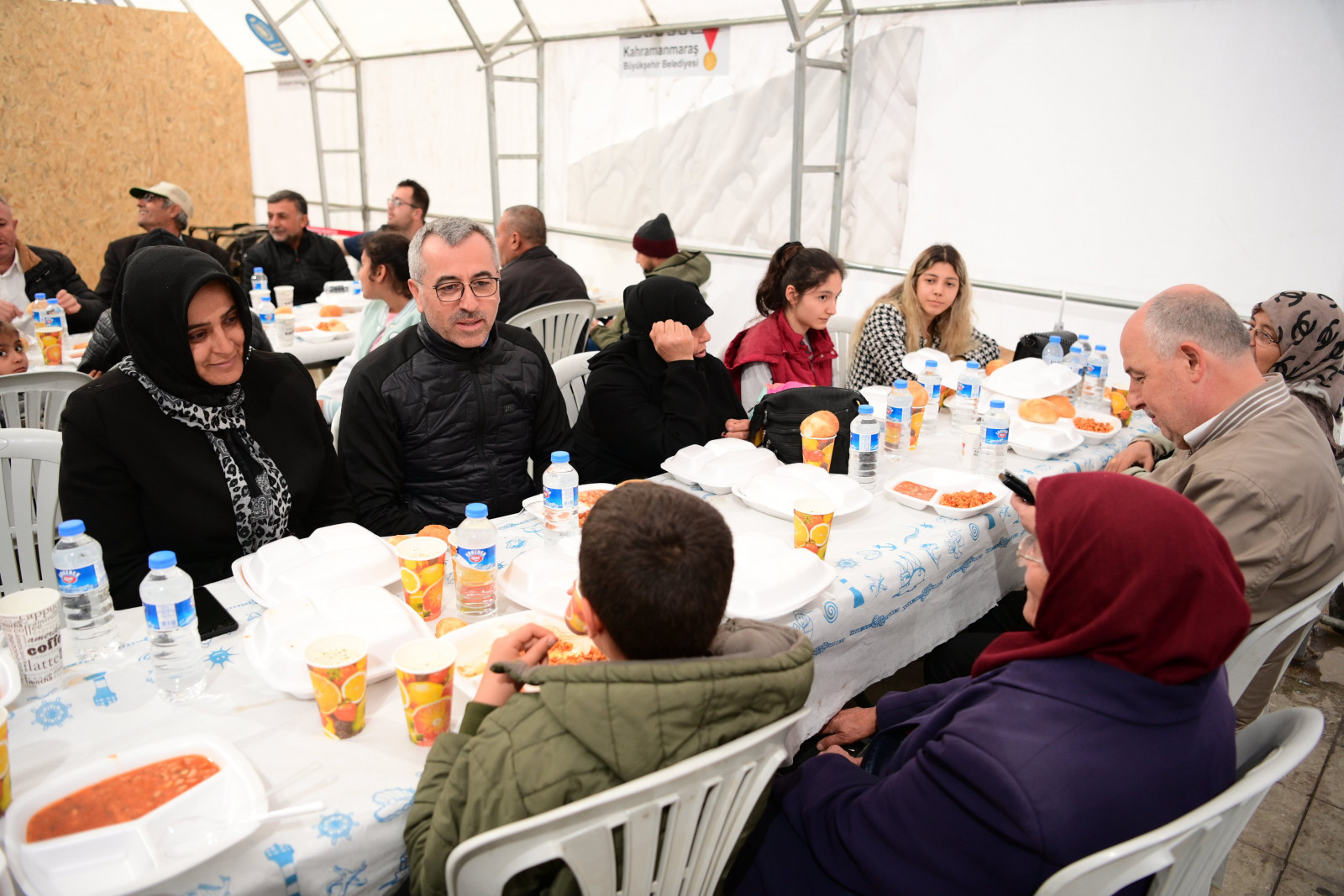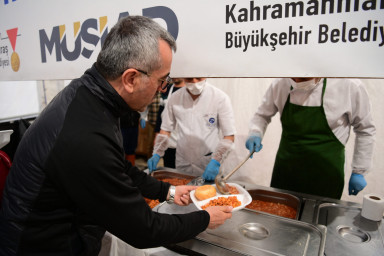 Kahramanmaraş Büyükşehir Belediye Başkanı Hayrettin Güngör, Vali Ömer Faruk Coşkun ile Ramazan ayının son gününde Milli İrade Meydanı’ndaki Büyükşehir Belediyesi’nin aşevinde vatandaşlarla birlikte iftar yaptı. İftar çadırında vatandaşlarla bir araya gelerek sohbet eden ve bayramlarını tebrik eden Başkan Güngör, “Bugün de iftar sofralarında hemşehrilerimizle bir araya geldik, orucumuzu açtık. Rabbim tuttuğumuz oruçlarımızı kabul, birlik ve beraberliğimizi daim eylesin. Hamdolsun Ramazan ayımızı hep birlikte eda ettik ve bayrama kavuşuyoruz. Maalesef yaşadığımız büyük felaket dolayısıyla buruk bir bayram geçireceğiz. Asrın felaketinde hayatını kaybeden kardeşlerimize bir kez daha Allah’tan rahmet diliyorum. Bu vesileyle tüm hemşehrilerimizin ve İslam âleminin Ramazan Bayramı’nı tebrik ediyorum” dedi.