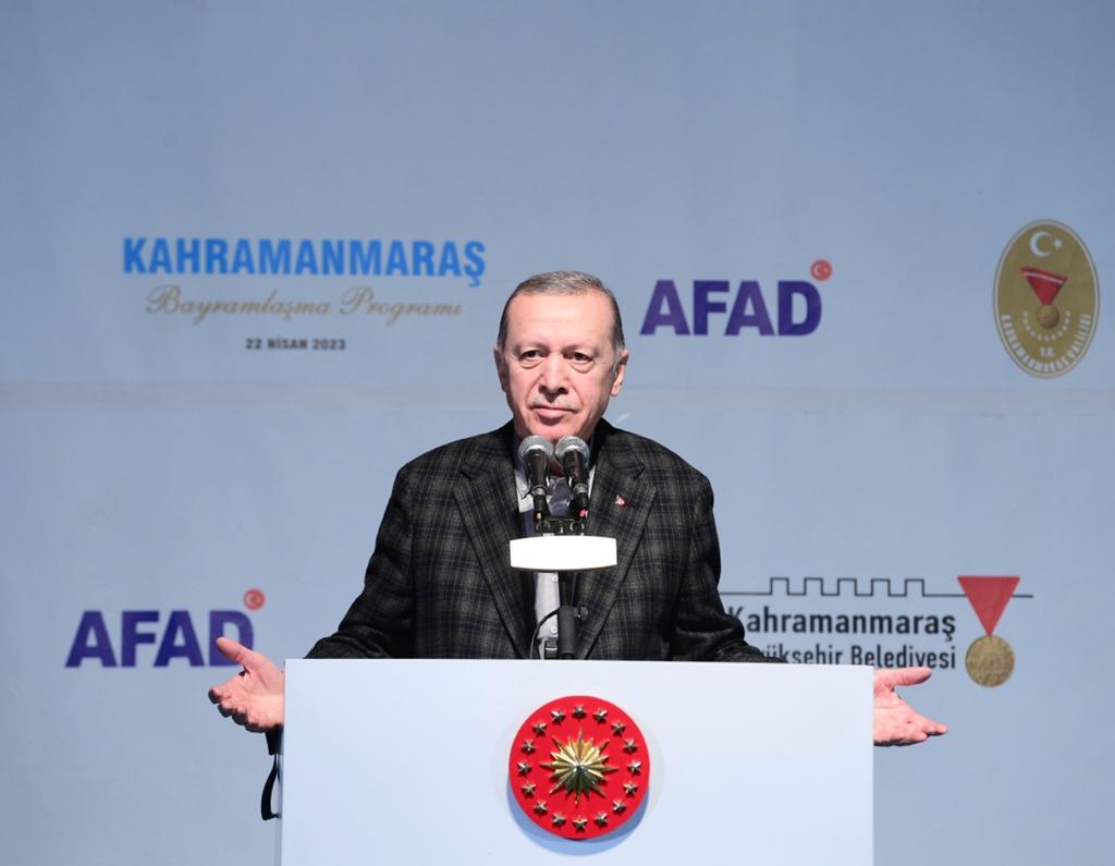 Baykar Konteyner Kent’te düzenlenen bayramlaşma programında Kahramanmaraşlılarla bir araya gelen Cumhurbaşkanı Erdoğan, “Henüz depremin ikinci haftasında kalıcı konutların inşasına başladık. Depremin 75’inci gününde 105 binin üzerinde kalıcı konutun yapım sürecine start verdik. Bunların yaklaşık yarısının da temelini attık. Önümüzdeki yılın bu vakitlerine kadar inşallah 319 bin konut ve köy evini depremzedelerimizin hizmetine sunmuş olacağız” dedi.
